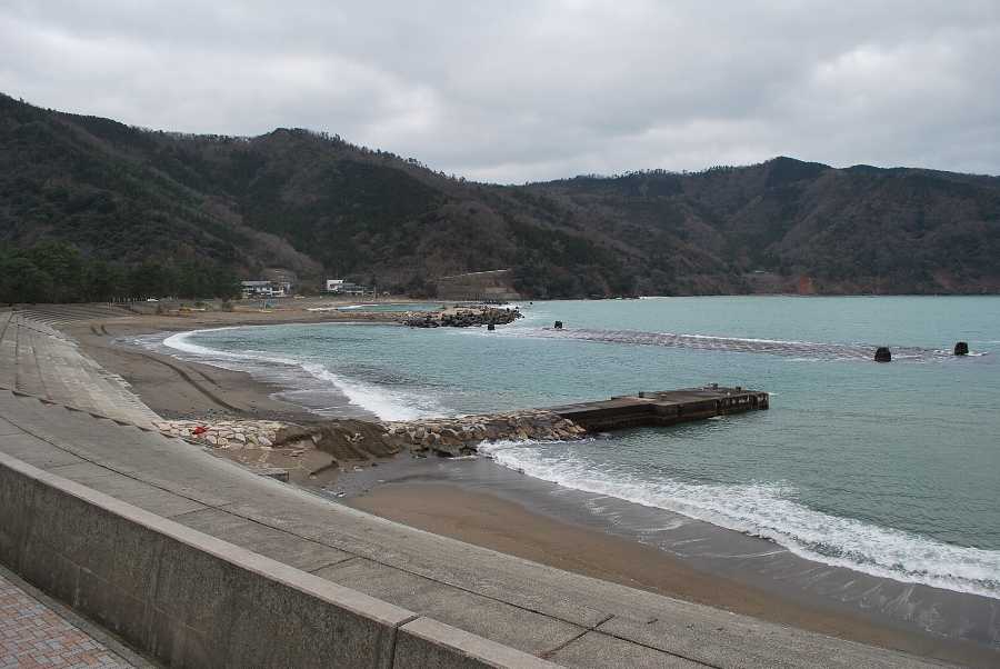海水の透明度は波と海岸工事の影響で濁り、海中の様子はほとんど見えません。