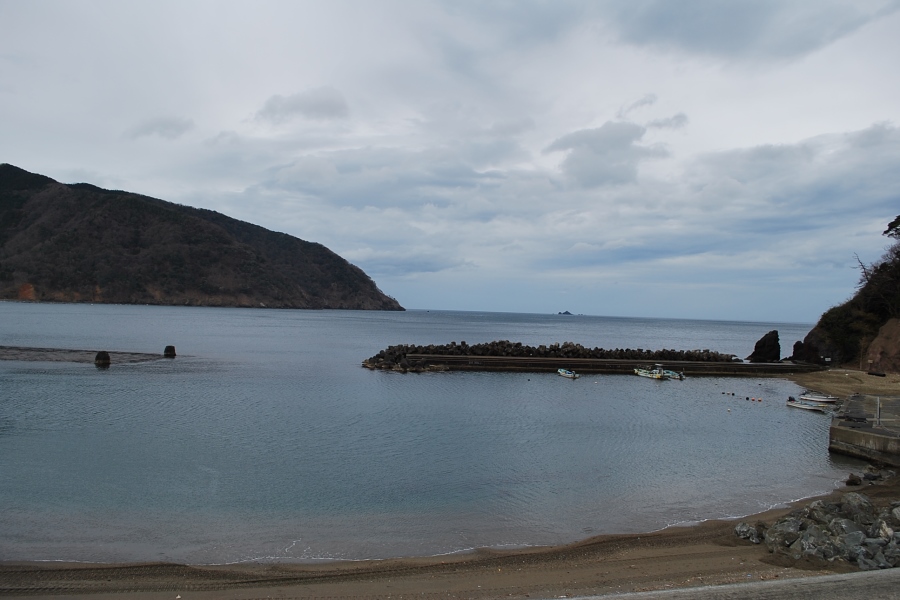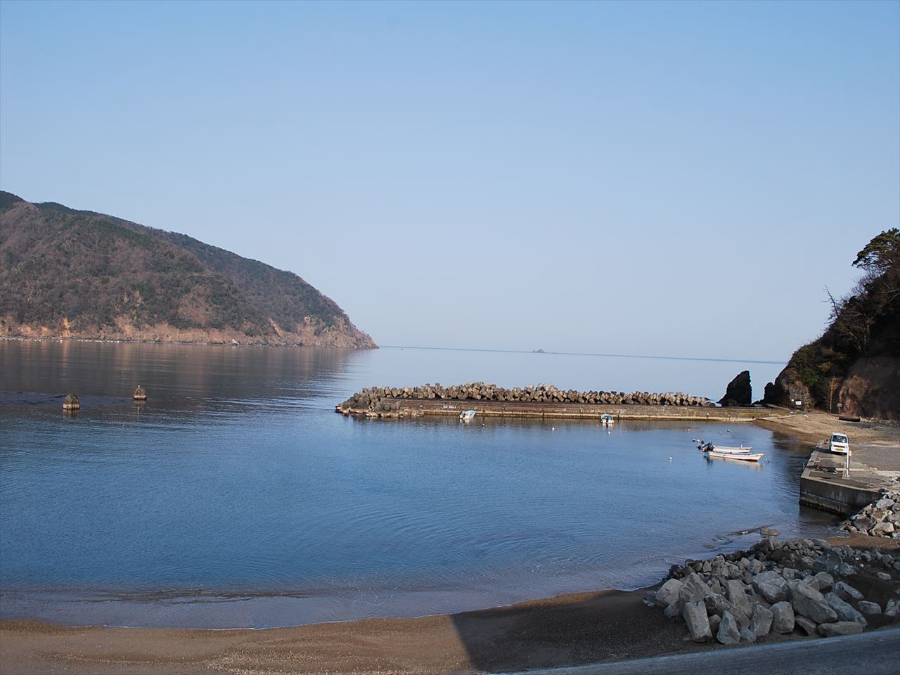 食見海岸は波はほとんどなく、穏やかな海になっています。