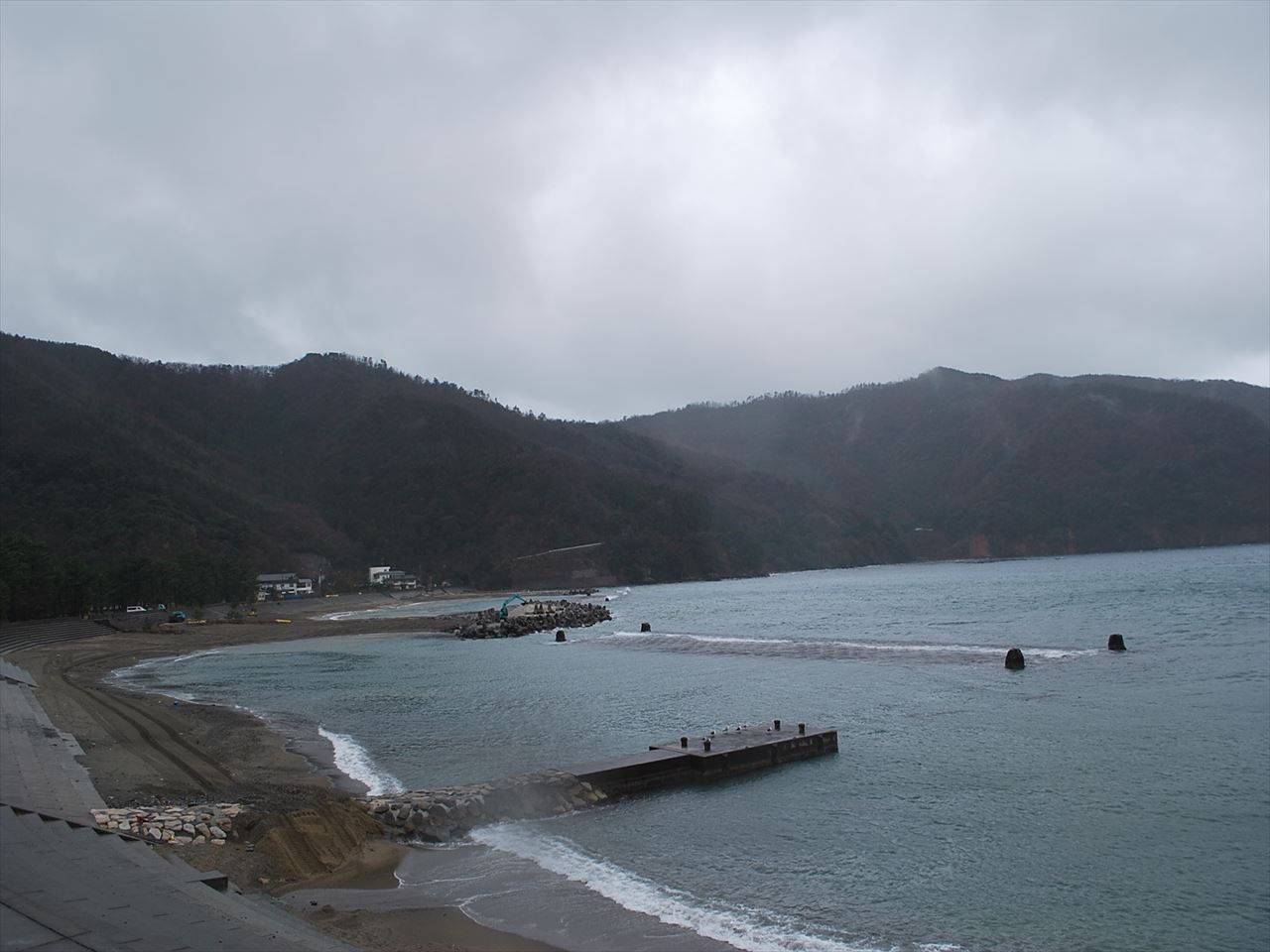 食見海岸は昨日までの穏やかな様子とは変わって、1mを超える波があります。