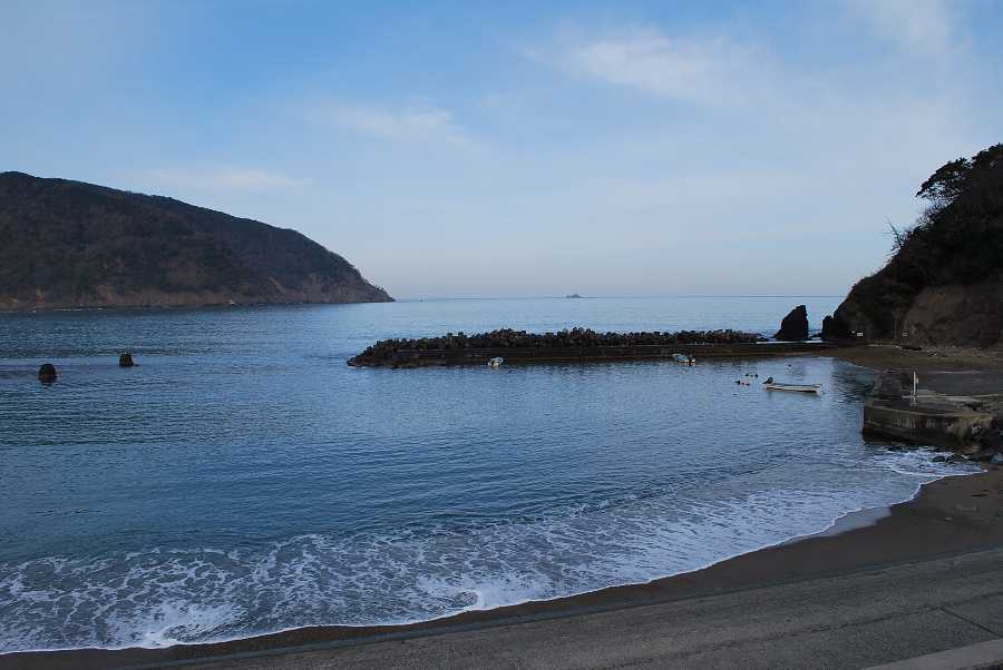 食見海岸の波はほとんどなく、昨日より穏やかな海況です。