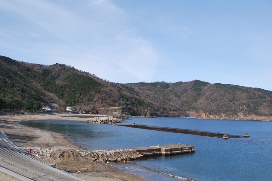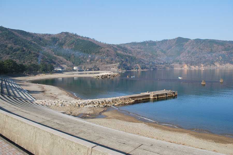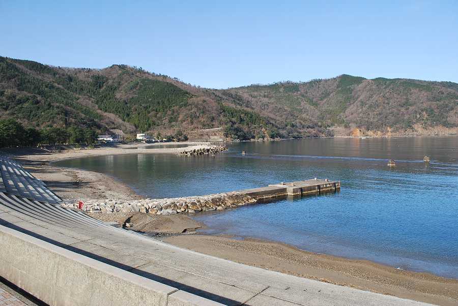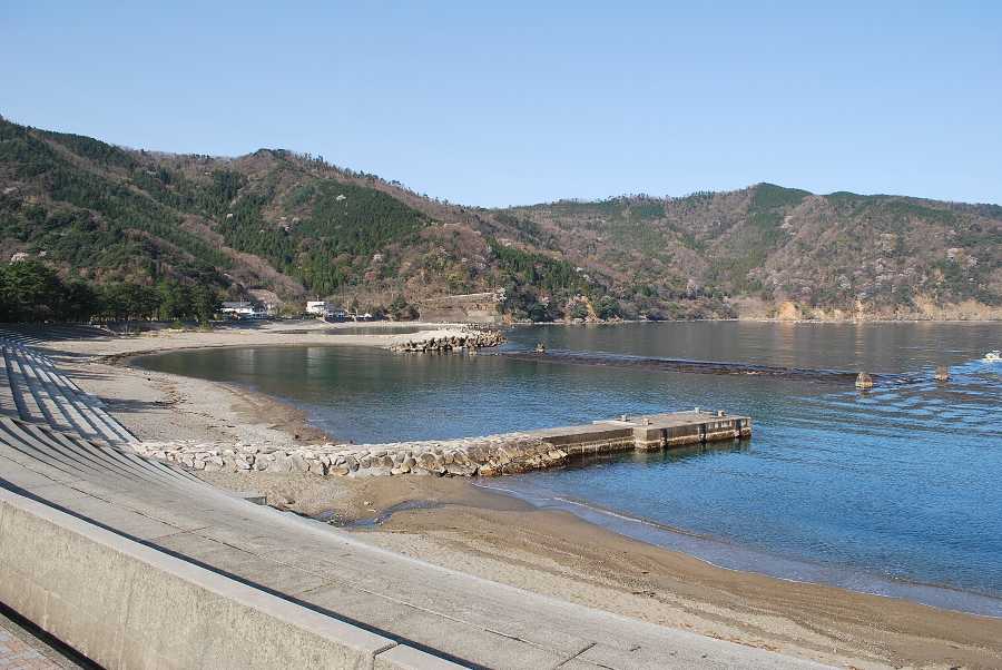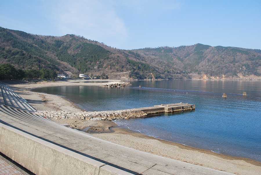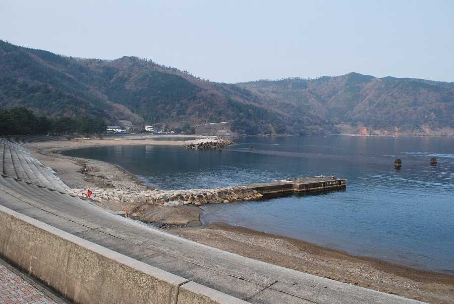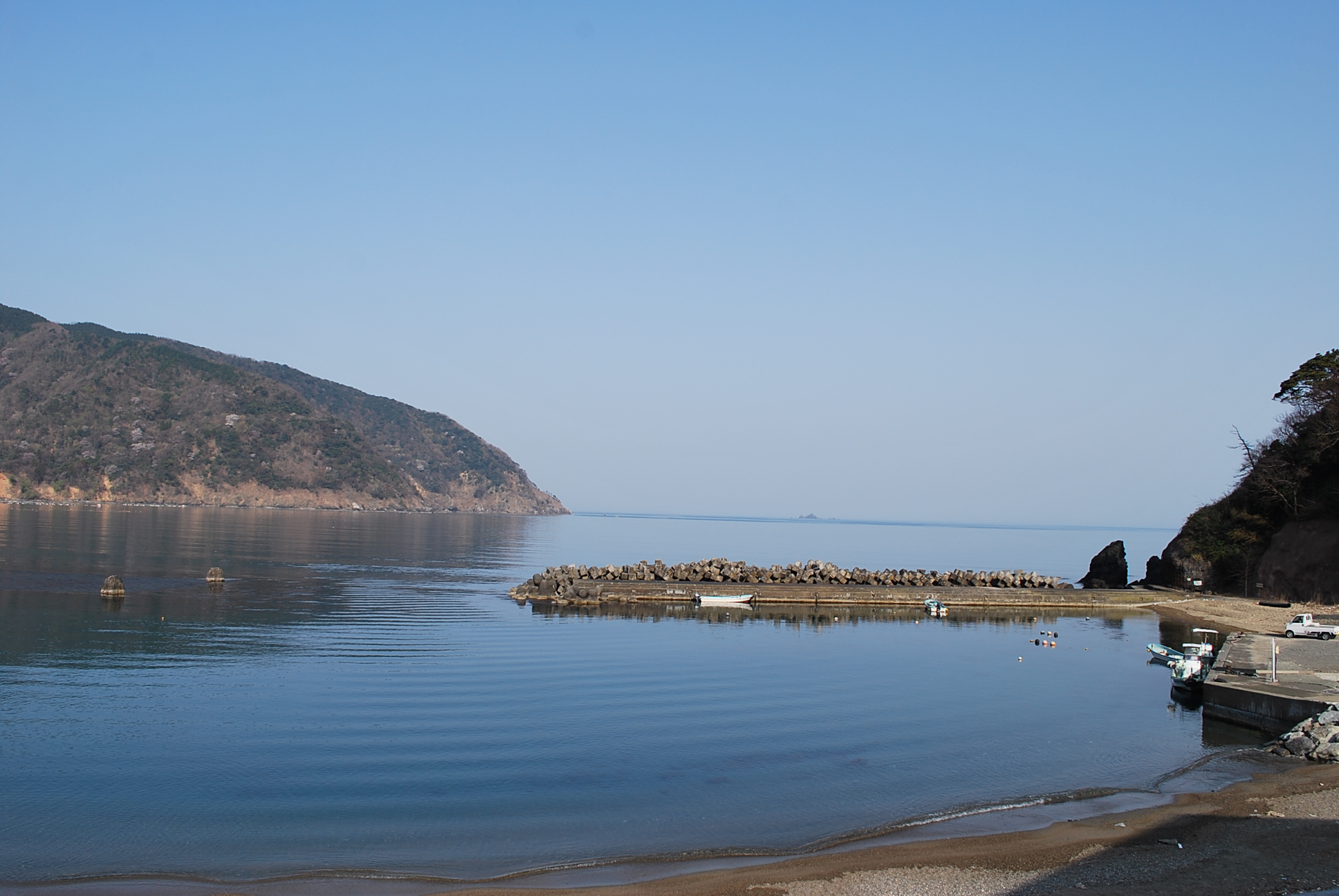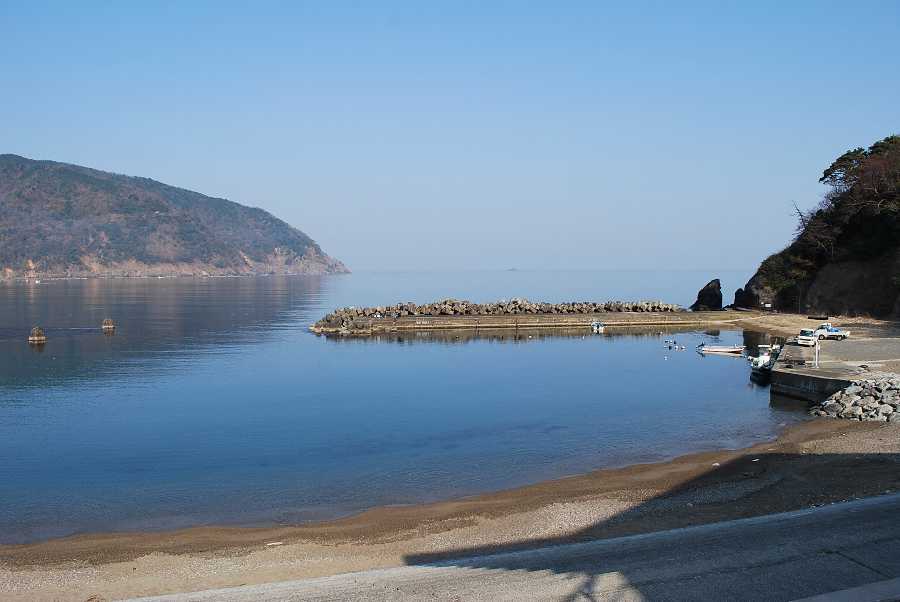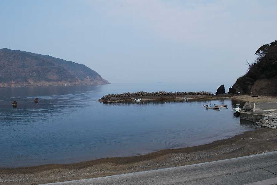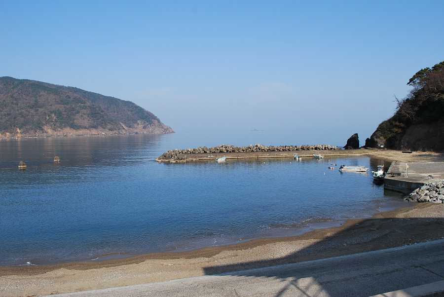 食見海岸は波はなく、おだやかな海となっています。