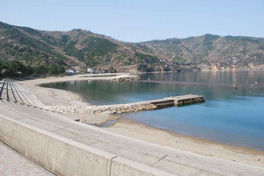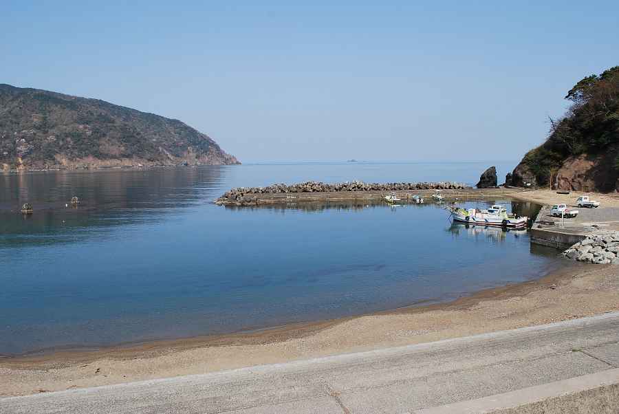 食見海岸は波も無く今日も穏やかな海況になっており、黒崎半島の山桜も咲いております。