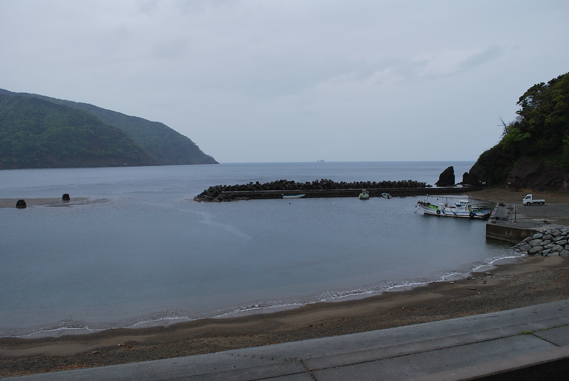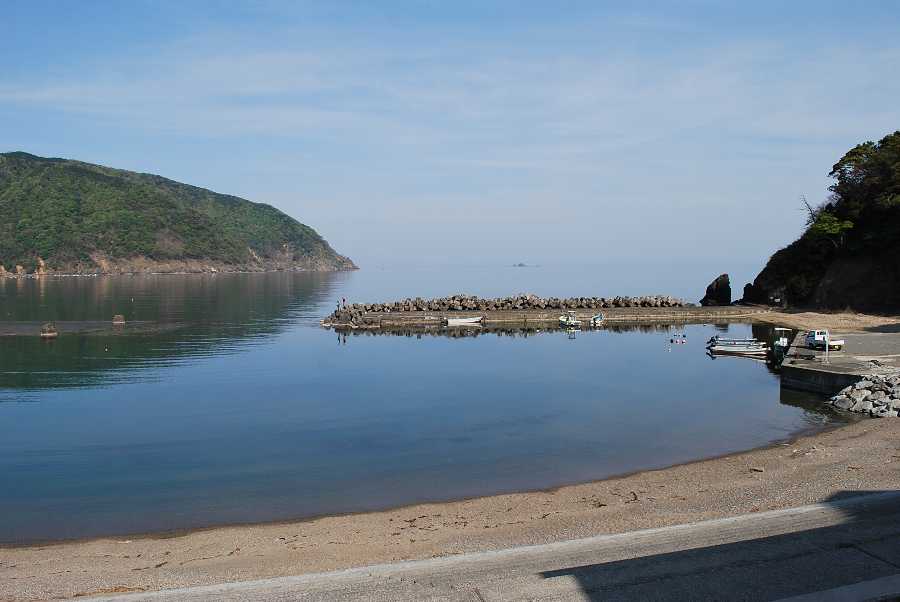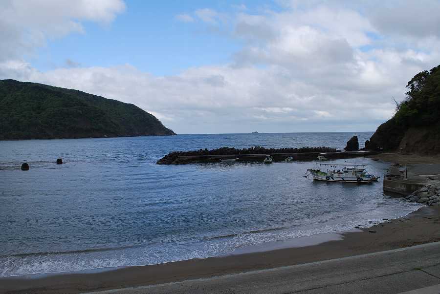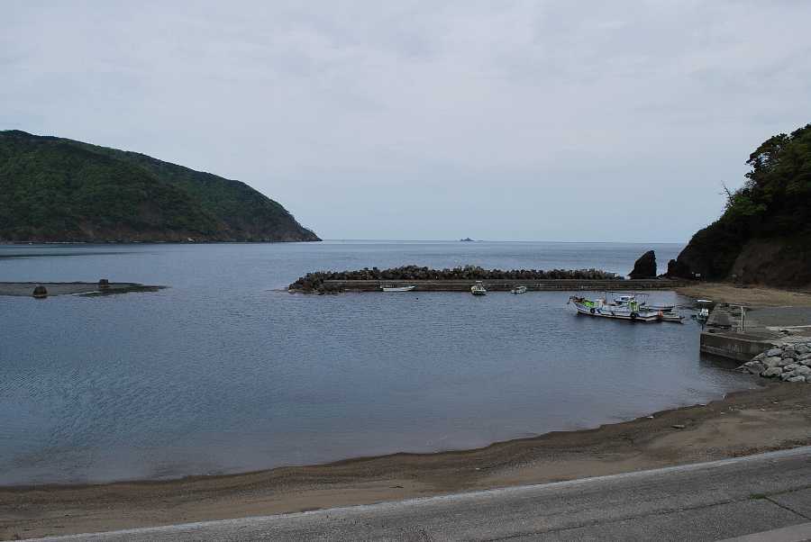食見海岸は、波も無く穏やかな海況で、沖合いにある千島がぽっかり浮かんでいるように見えます。