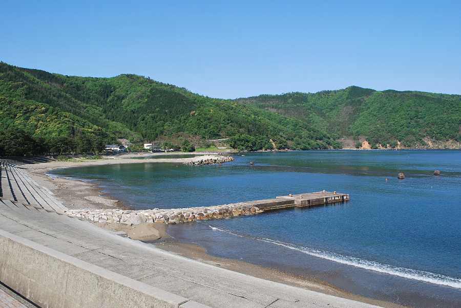 2018年5月5日9時現在は、晴れで弱い南の風があります。 食見海岸は高い波も無く穏やかな海況です。 海水の透明度は高く、海底の岩が見えます。