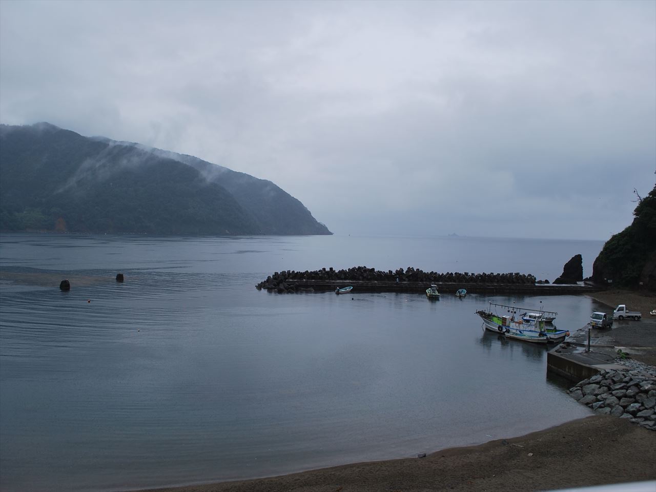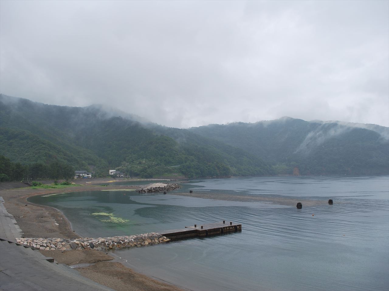 2018年6月6日9時現在は雨で、風はほとんどありません。 食見海岸は、ほとんど波もなく穏やかな状態です。 海水の透明度は高く、海の底までよく見えます。