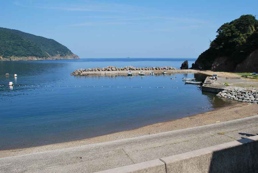 2018年8月2日9時現在は、晴れで南寄りの風があります。食見海岸はほとんど波もなく穏やかな状態です。海水の透明度は高く、海底まではっきりと見ることができます。