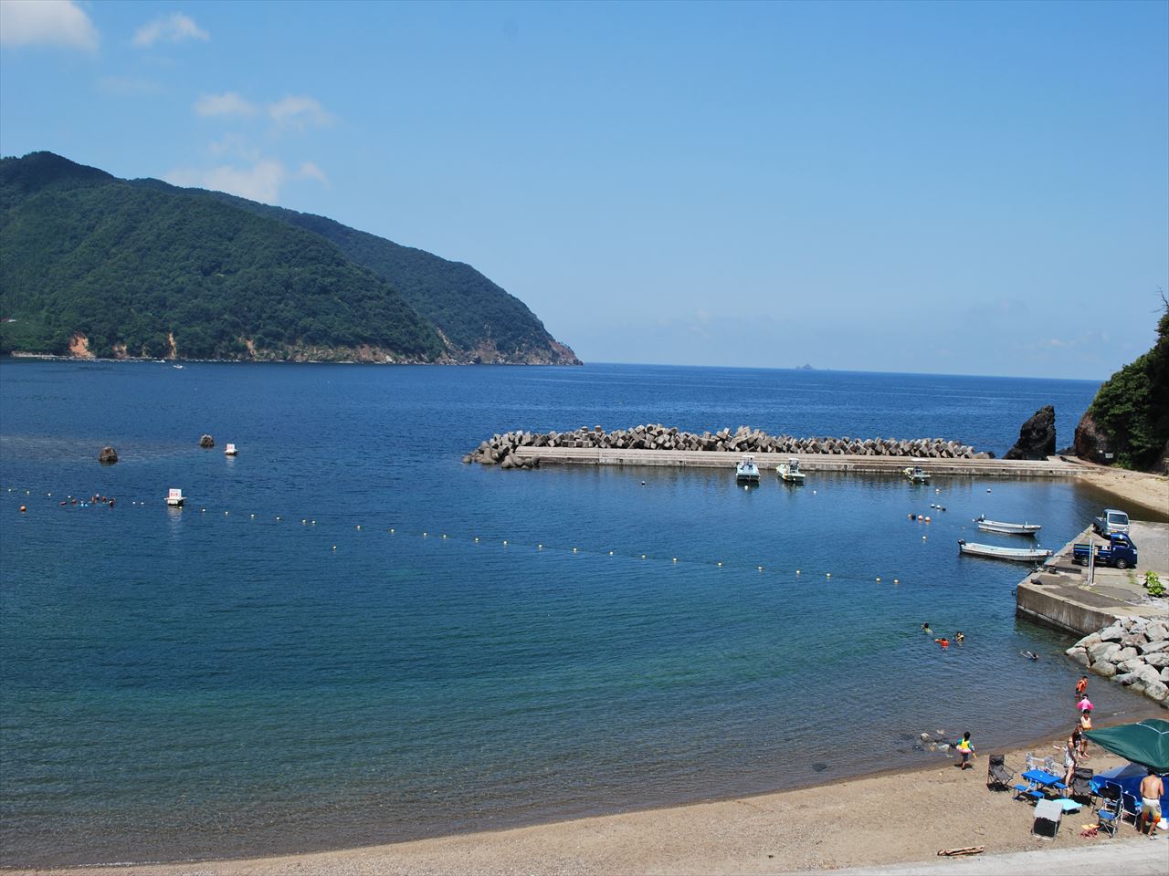 2018年8月3日9時現在は、晴れで南寄りの風があります。食見海岸はさざ波が立っていますが、穏やかな海況です。海水の透明度は高く、クサフグやイシダイの幼魚の群れが泳ぐ姿が見られます。