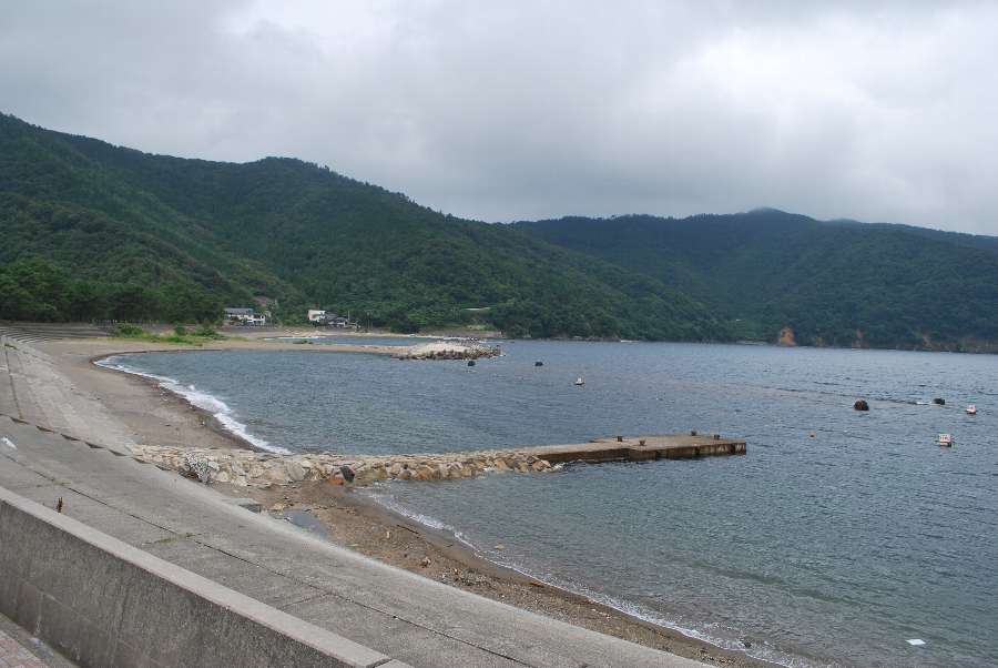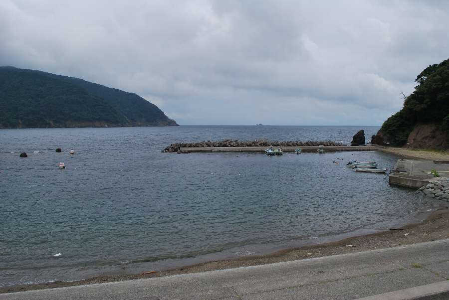 食見海岸は波もなく穏やかな海況です。