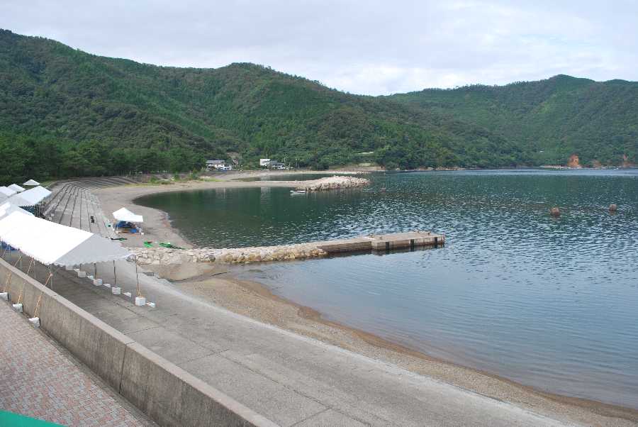食見海岸は少々の波はありますが、穏やかな海況です。また現在福井国体のOWSの準備を行っております。