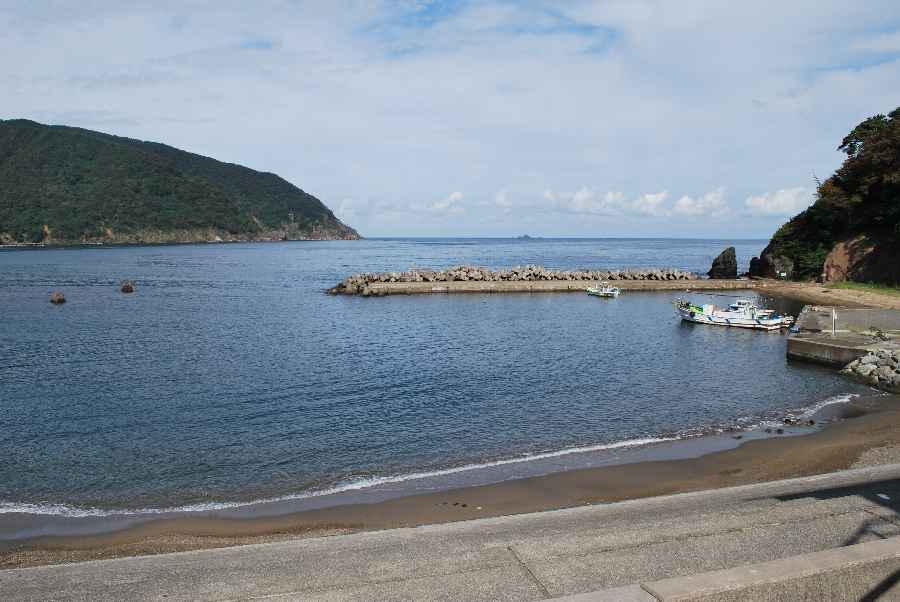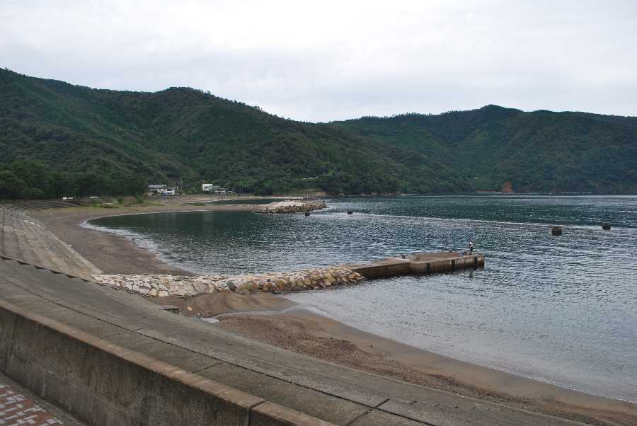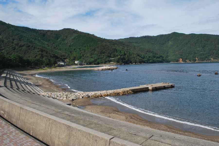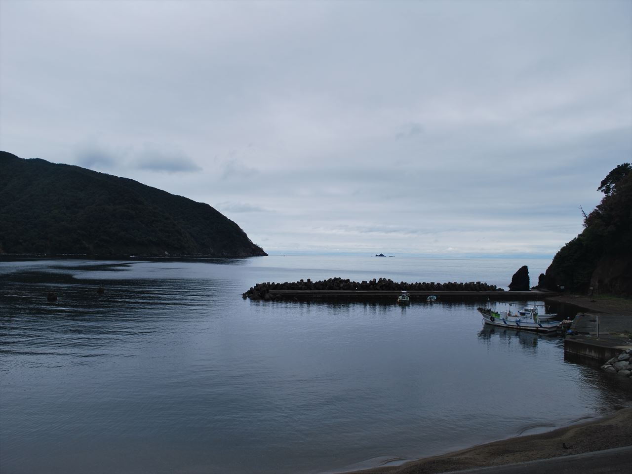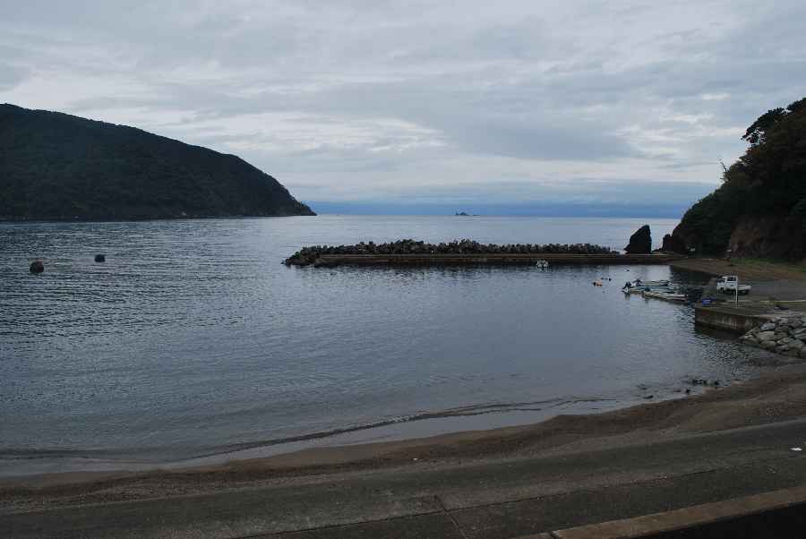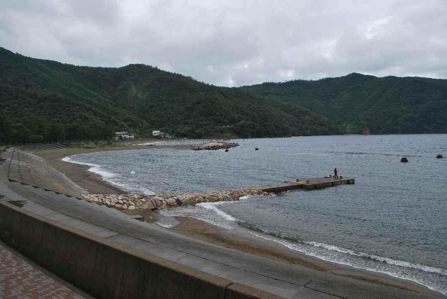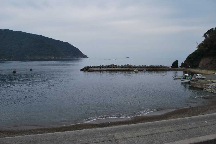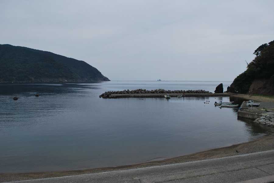 食見海岸は約1mの波があり、時々防波堤の根元に波が被りますが、穏やかな海況です。