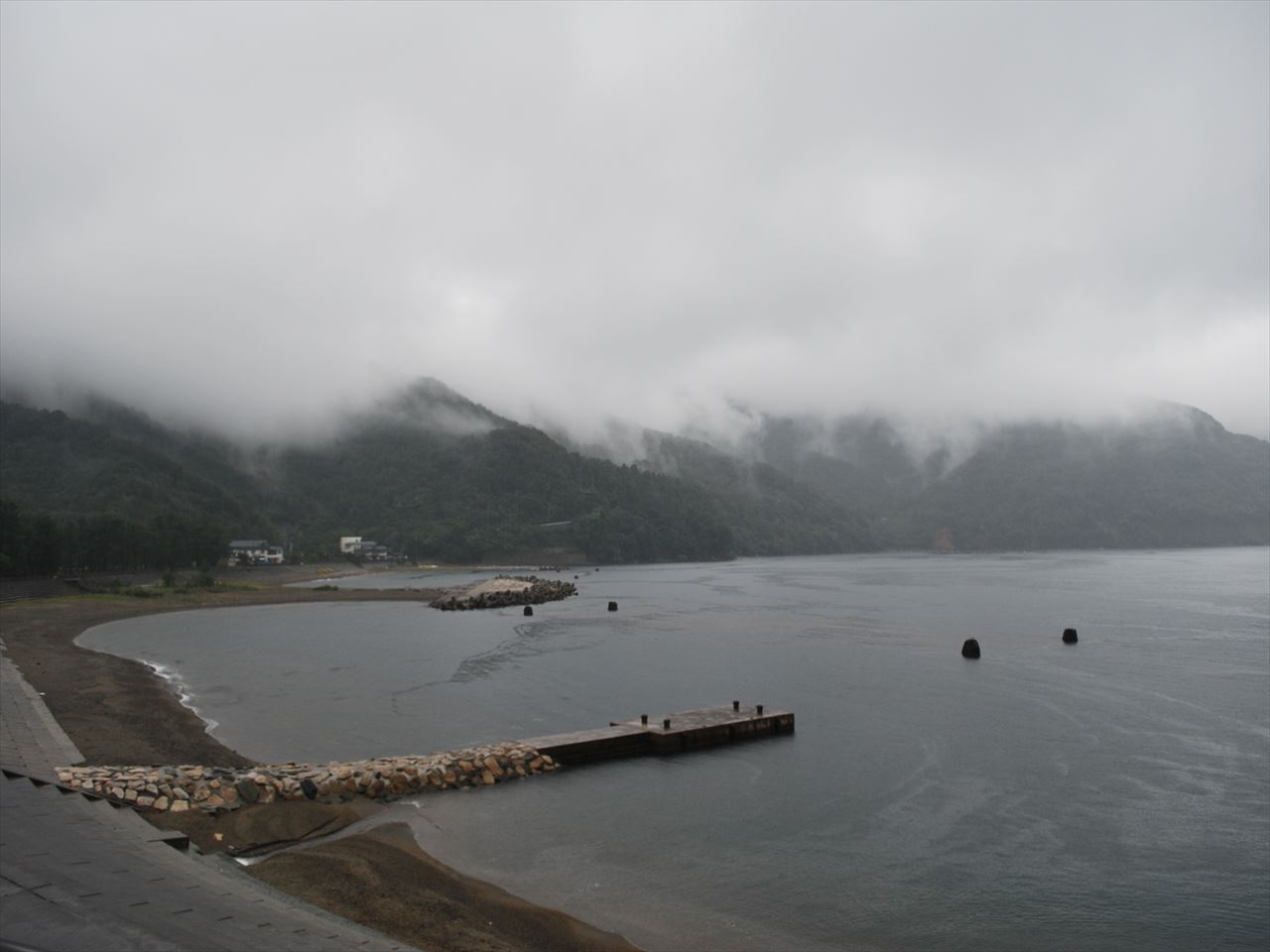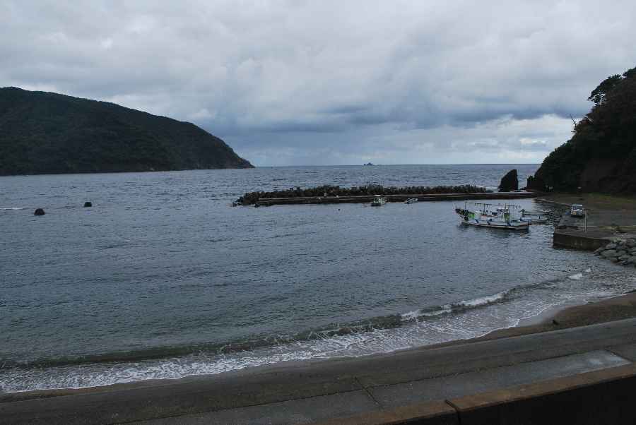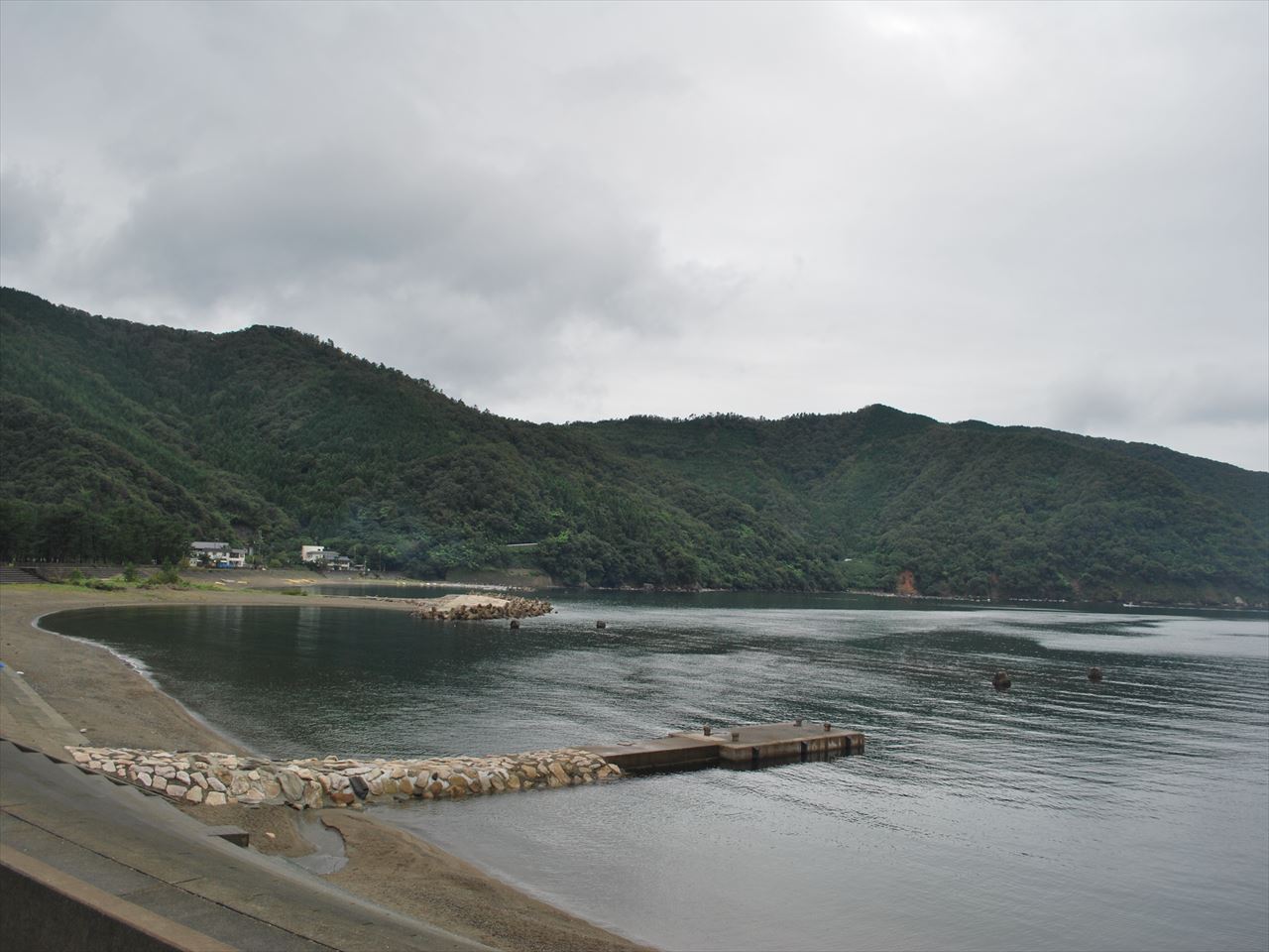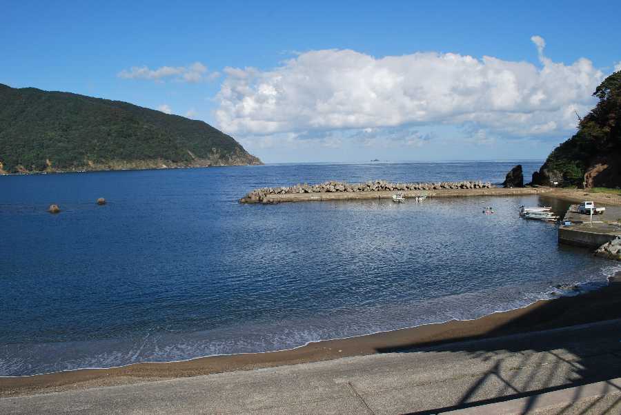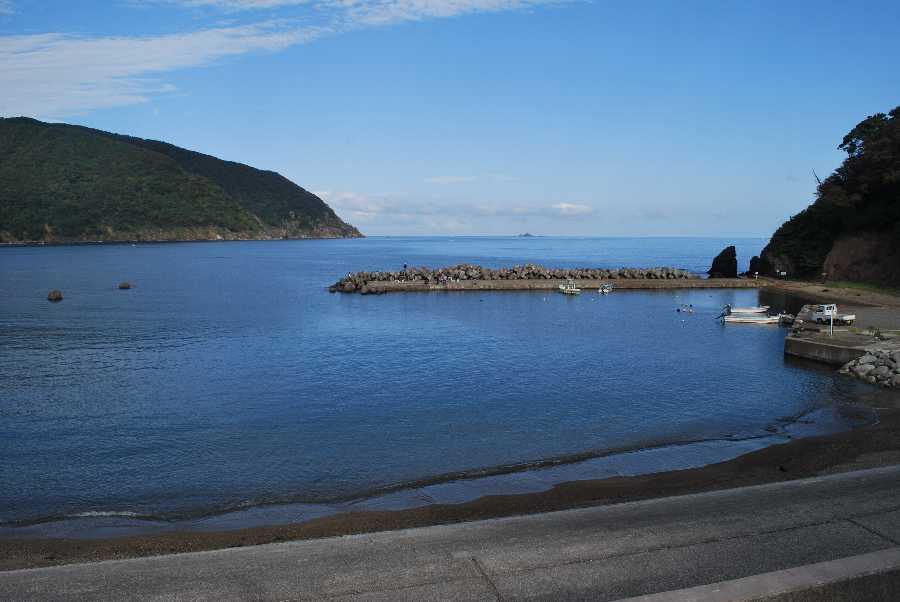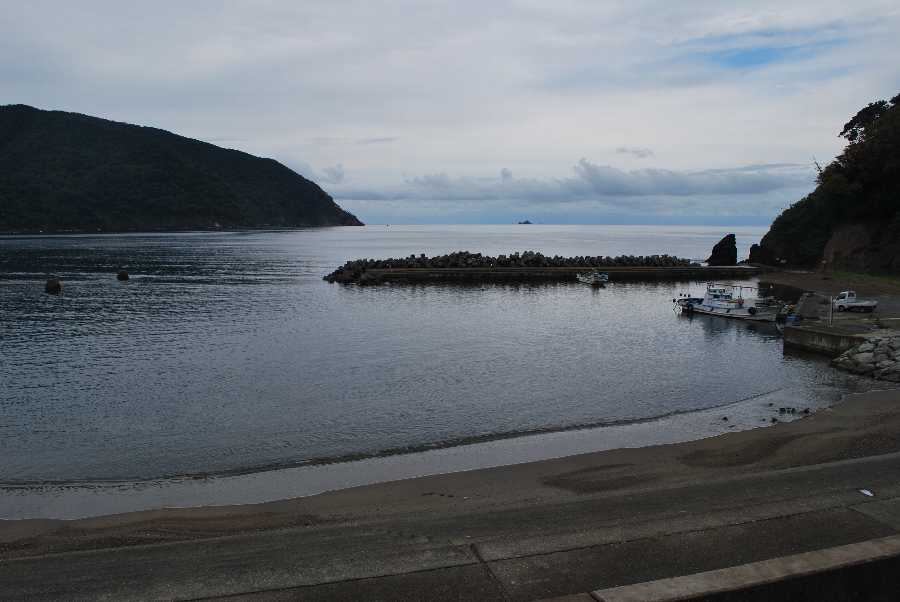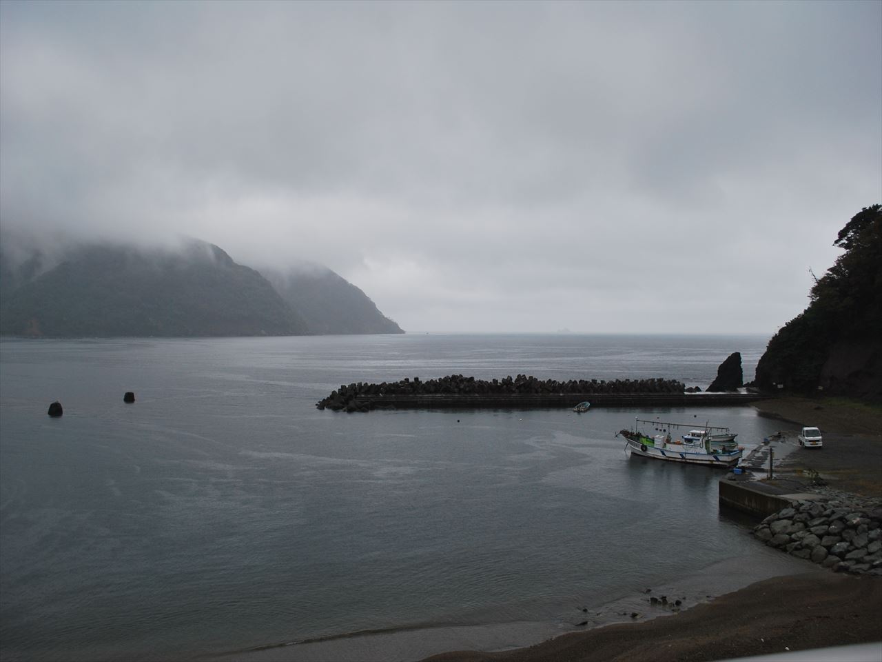 食見海岸は約1mの波があり、時々防波堤の根元に波が被りますが、穏やかな海況です。