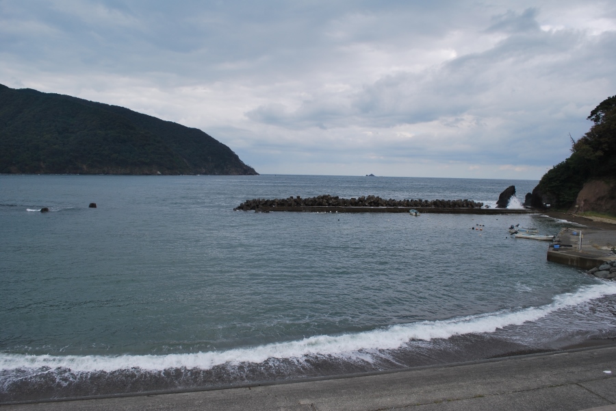 2018年10月2日9時現在は、曇で風はほとんどありません。食見海岸は高潮もあり、約2mの波があります。海水は濁っており、海中はほとんど見えません。