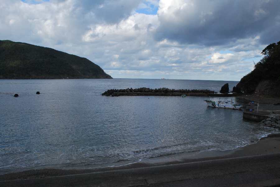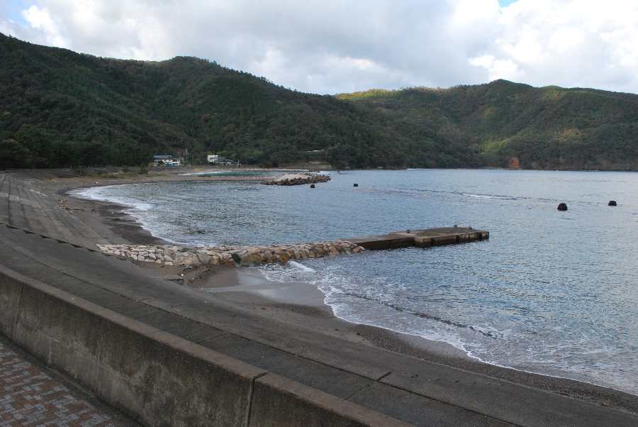 食見海岸は約1mの波があり、時々防波堤に波が被ります。