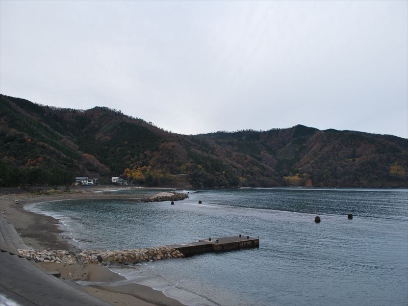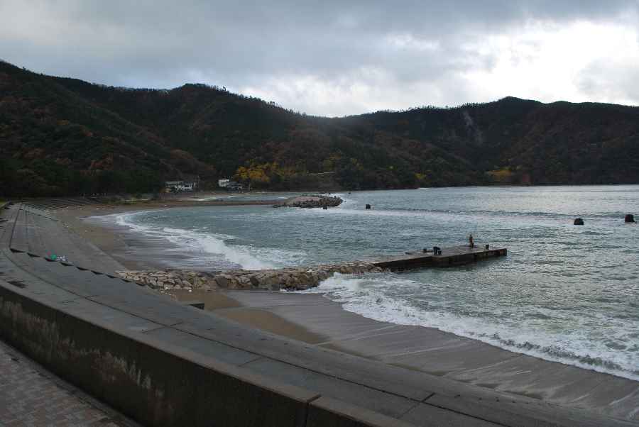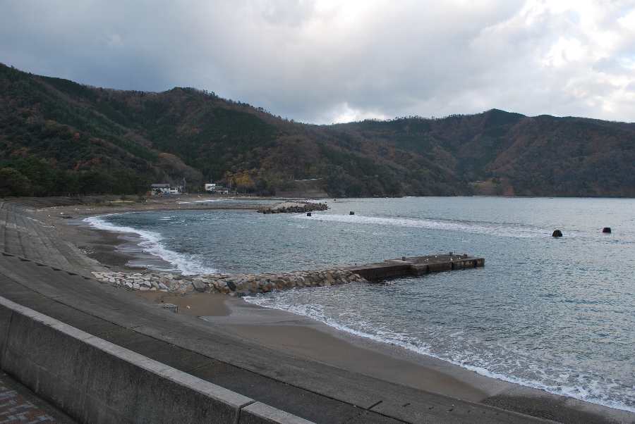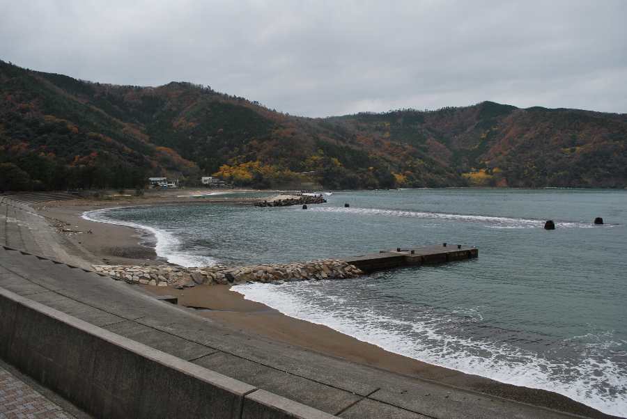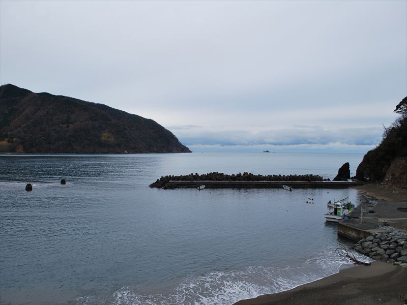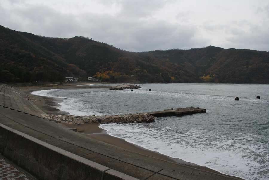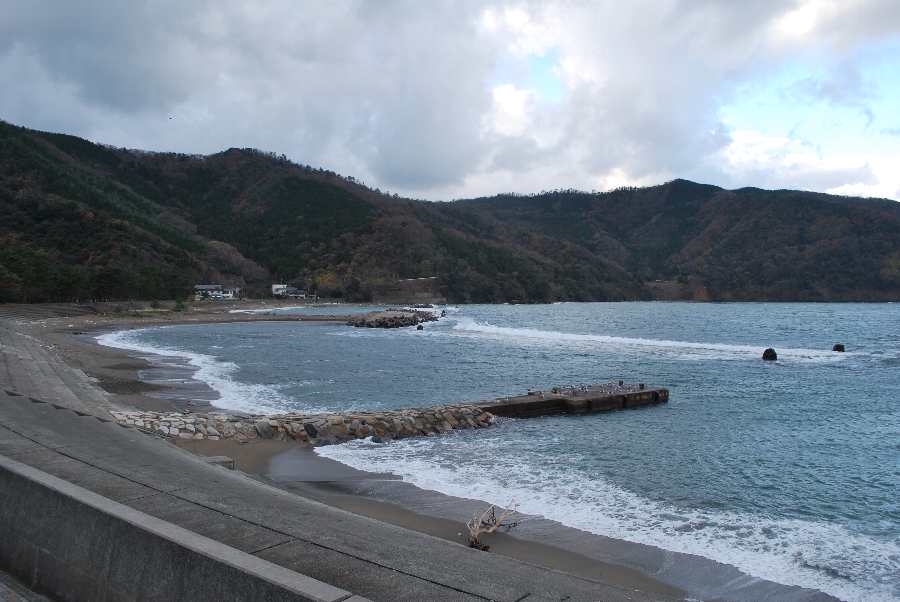 2018年12月16日9時現在は、曇で南寄りの風が冷たく感じます。食見海岸は1m程度の波があります。海水の透明度はやや低く、海底まではっきりと見ることができません。