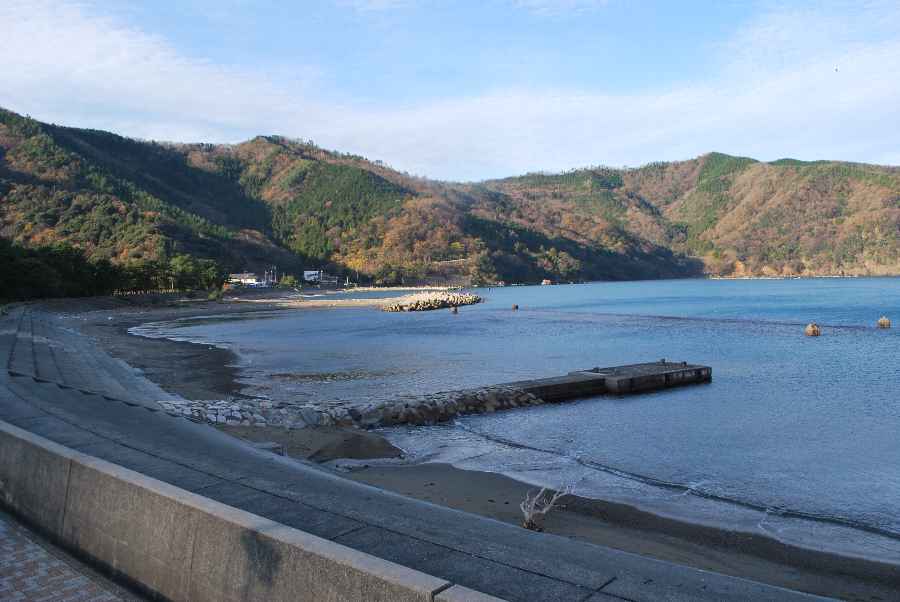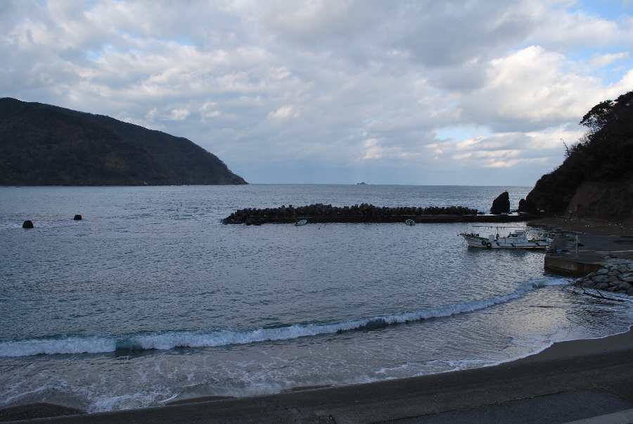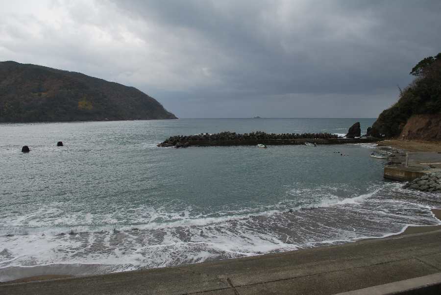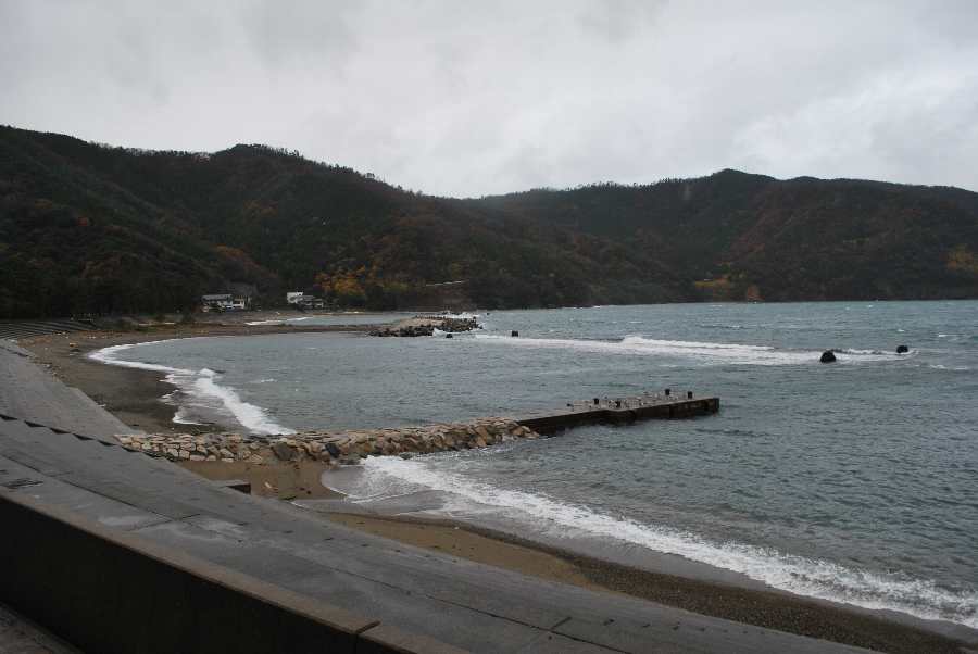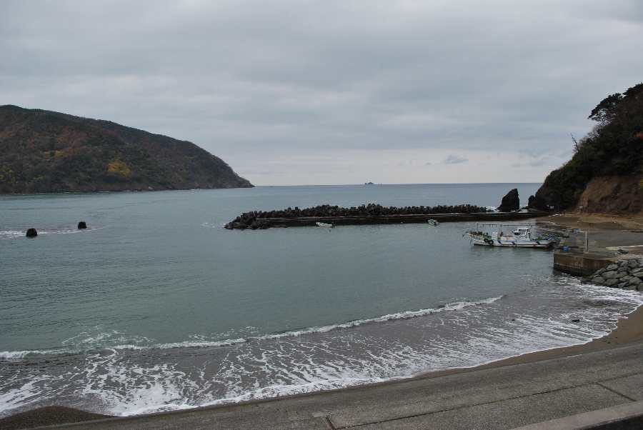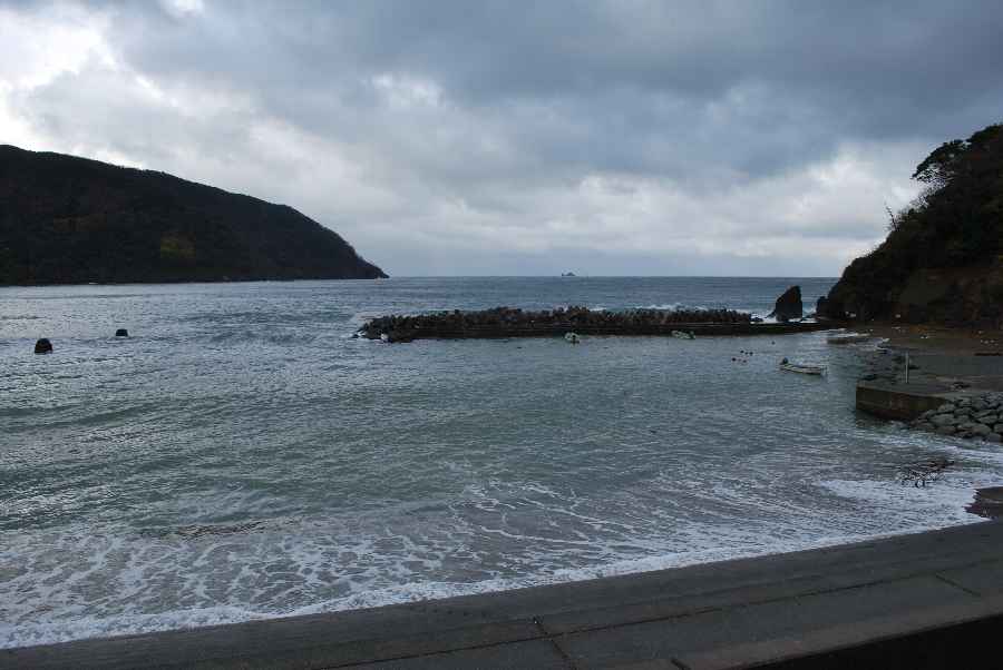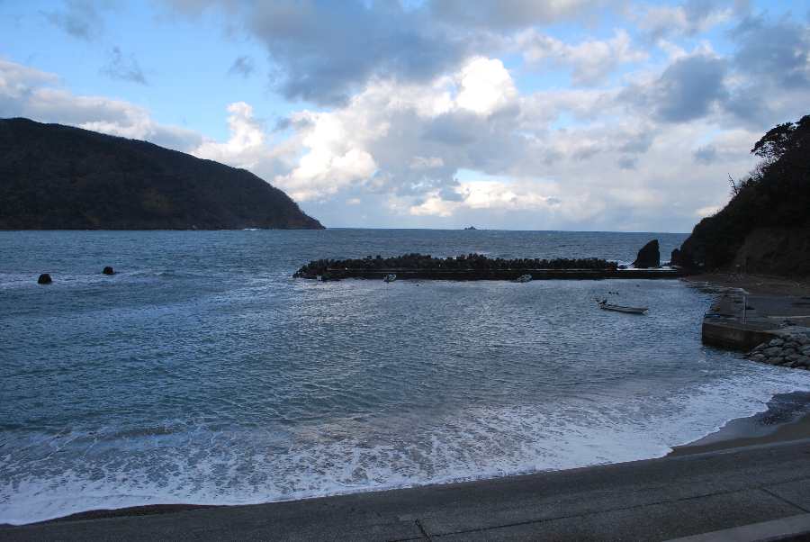 2018年12月16日9時現在は、曇で南寄りの風が冷たく感じます。食見海岸は1m程度の波があります。海水の透明度はやや低く、海底まではっきりと見ることができません。