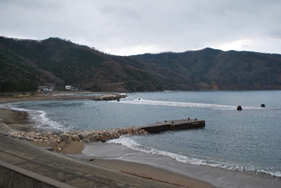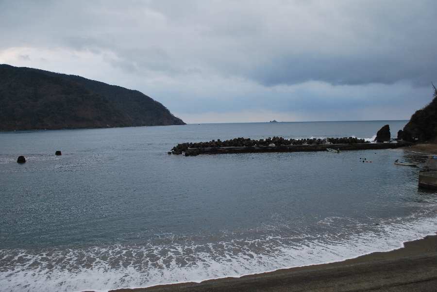 食見海岸は約2mの波があり、時々防波堤に波が被ります。