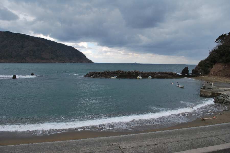 食見海岸は約1mの波があり、次第に波が高くなる予報です。