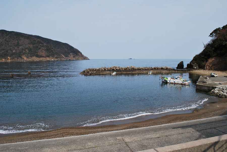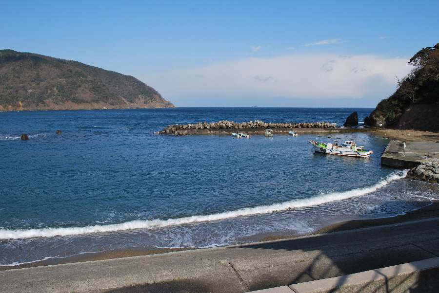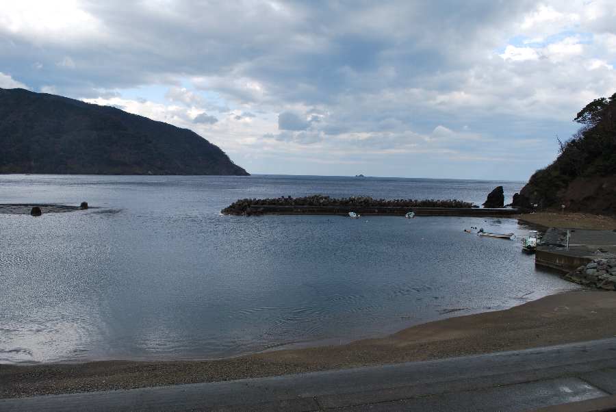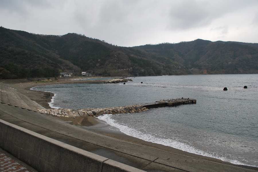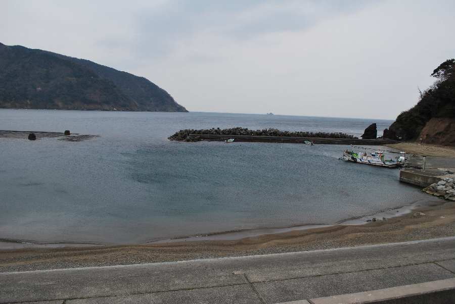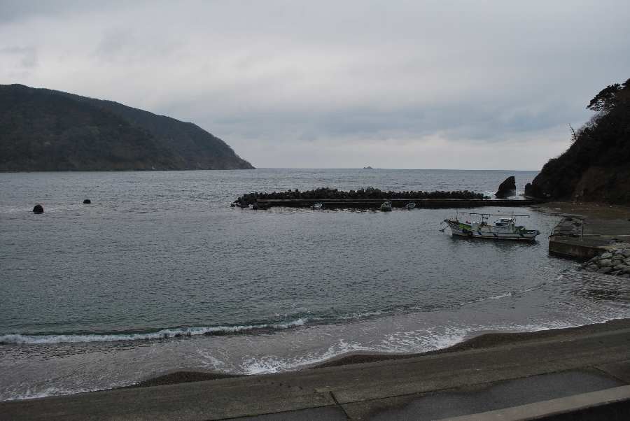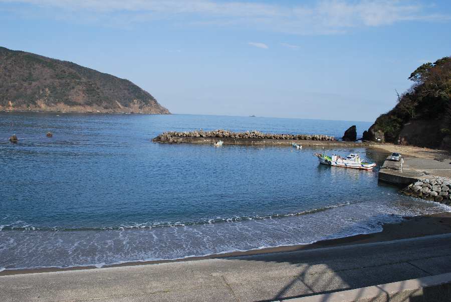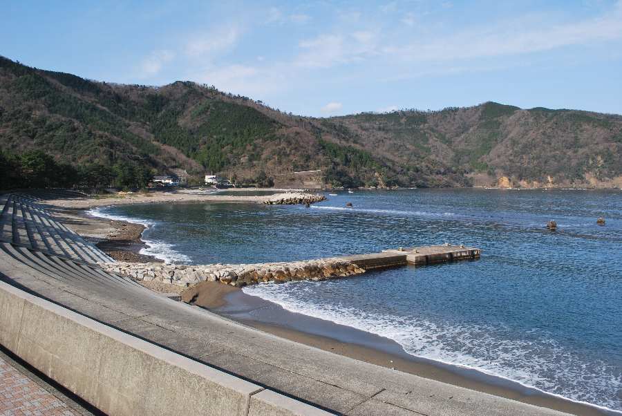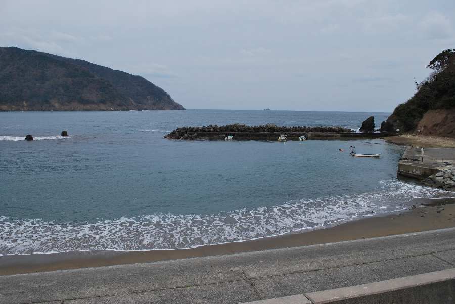 食見海岸は約1mの波があり、時々防波堤に波が被ります。