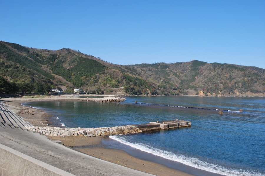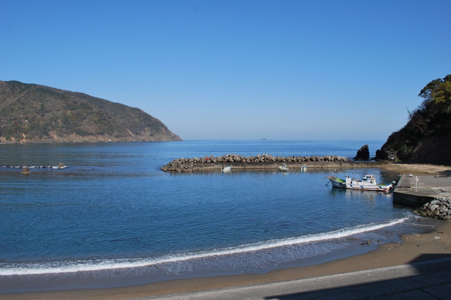 海水の透明度は高く、海底の岩や海藻が見えます。