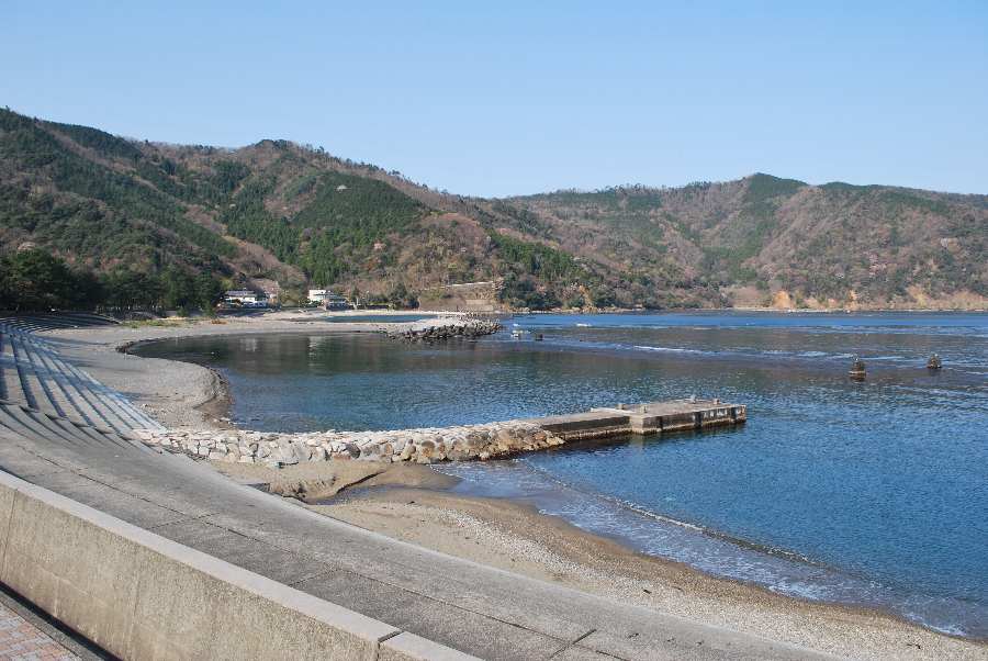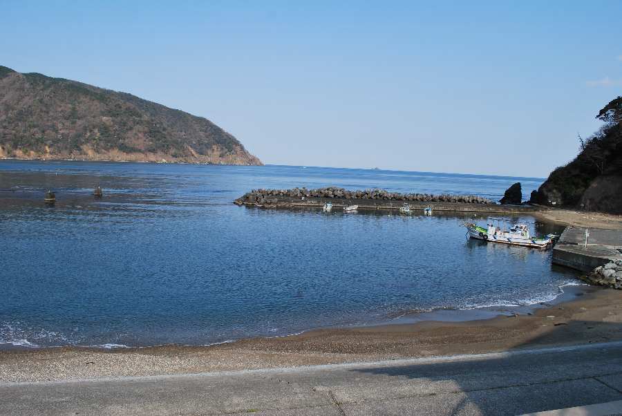 食見海岸は約0.5mの波がありますが、穏やかな海況です。また黒崎半島の山桜も満開間近になってきました。