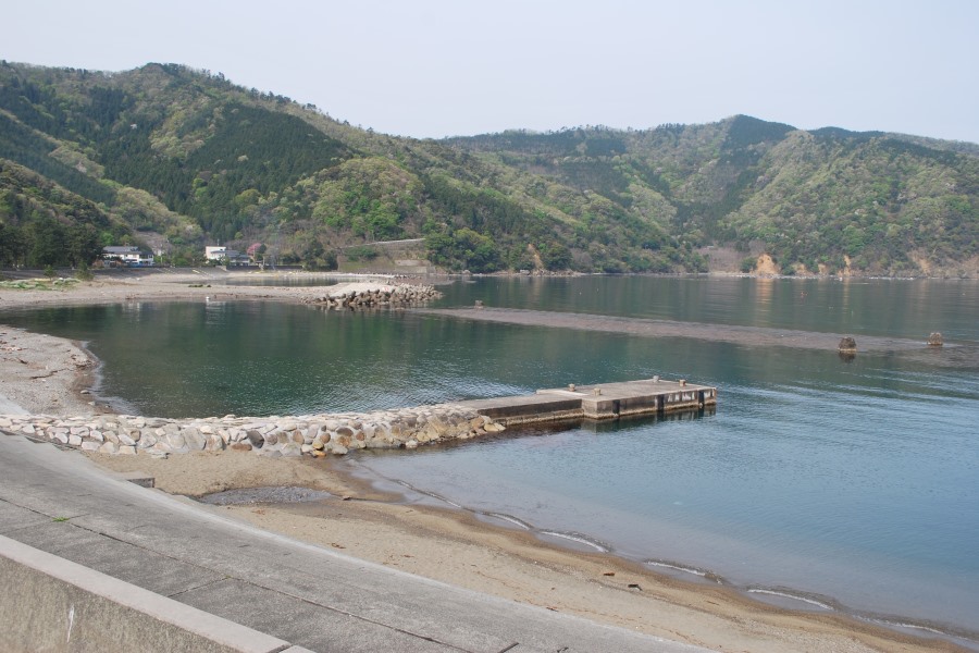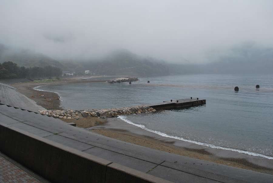 海水の透明度は低く、薄く濁っていますが、少し海底の岩が見えます。