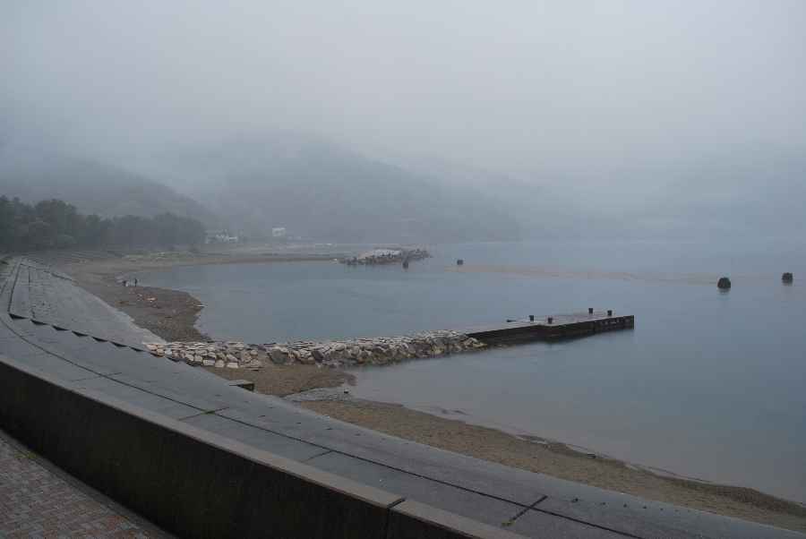 海水の透明度は低く、薄く濁っていますが、ほんの少し海底の岩が見えます。