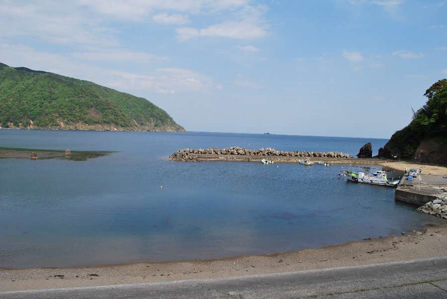 食見海岸は岸から沖合いにかけてのさざ波がありますが、穏やかな海況です。