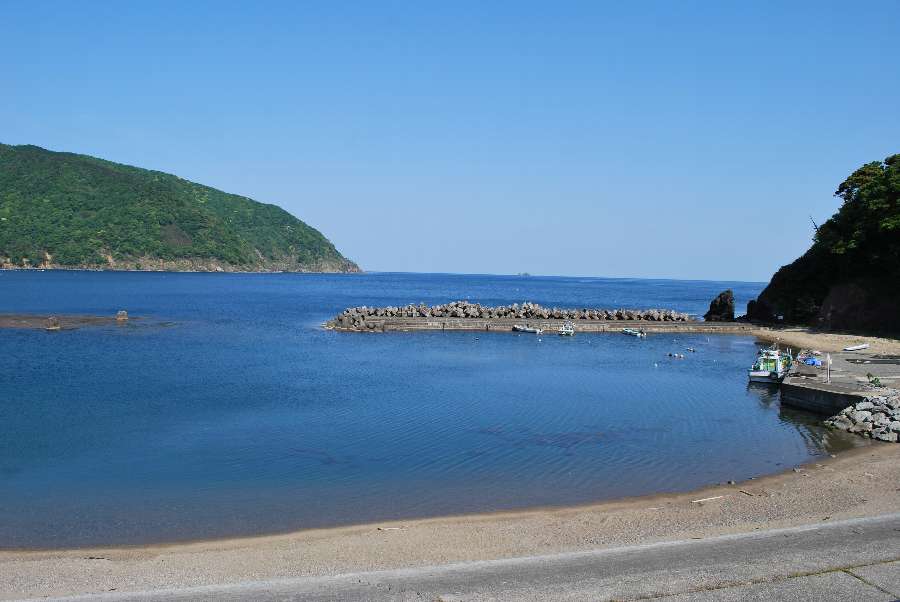 食見海岸は風によるさざ波がありますが、穏やかな海況です。