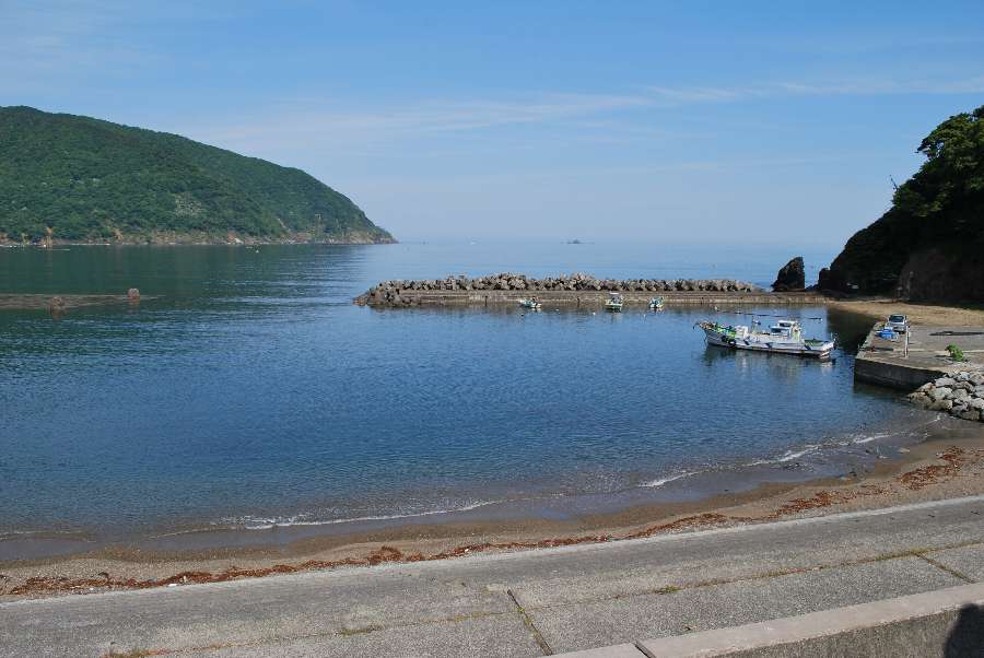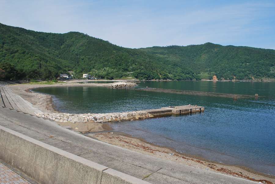 海水の透明度は高く、海底の岩やボラの若魚が泳いでいる様子が見えます。