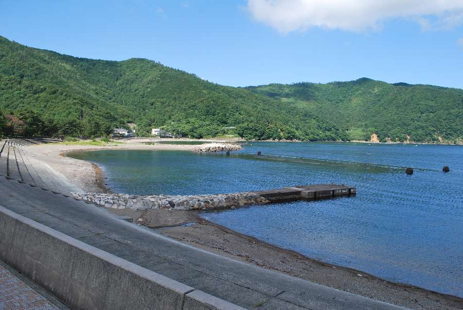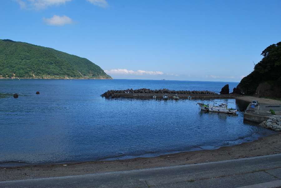 2019年6月13日9時現在は、晴れで弱い南風が吹いています。 食見海岸はさざ波がありますが、穏やかな海況です。 海水の透明度は高く、海底にある海藻やボラの若魚が泳ぐ様子が見えます。
