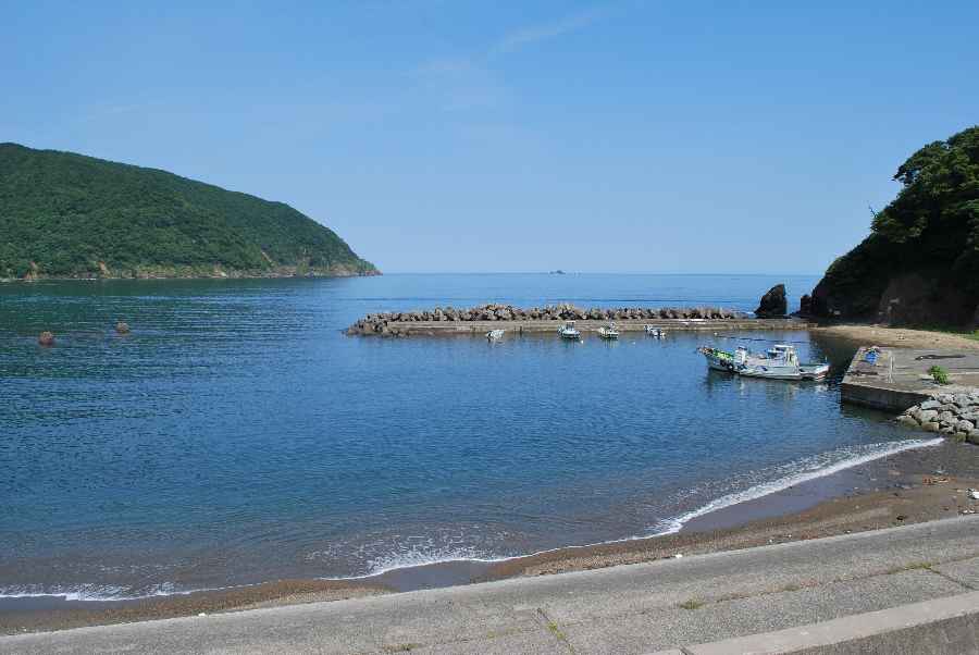 2019年6月18日9時現在は、晴れで南よりの風が心地よく吹いています。食見海岸は0.5m程度の波はありますが、比較的穏やかです。海水の透明度は高く、メジナの稚魚の群れが見られます。
