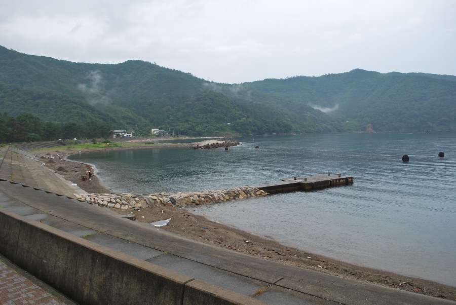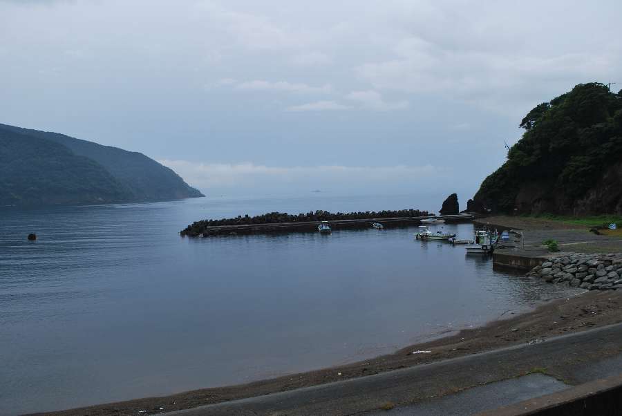 食見海岸は波もなく穏やかな海況です。
