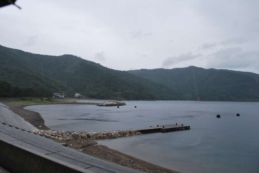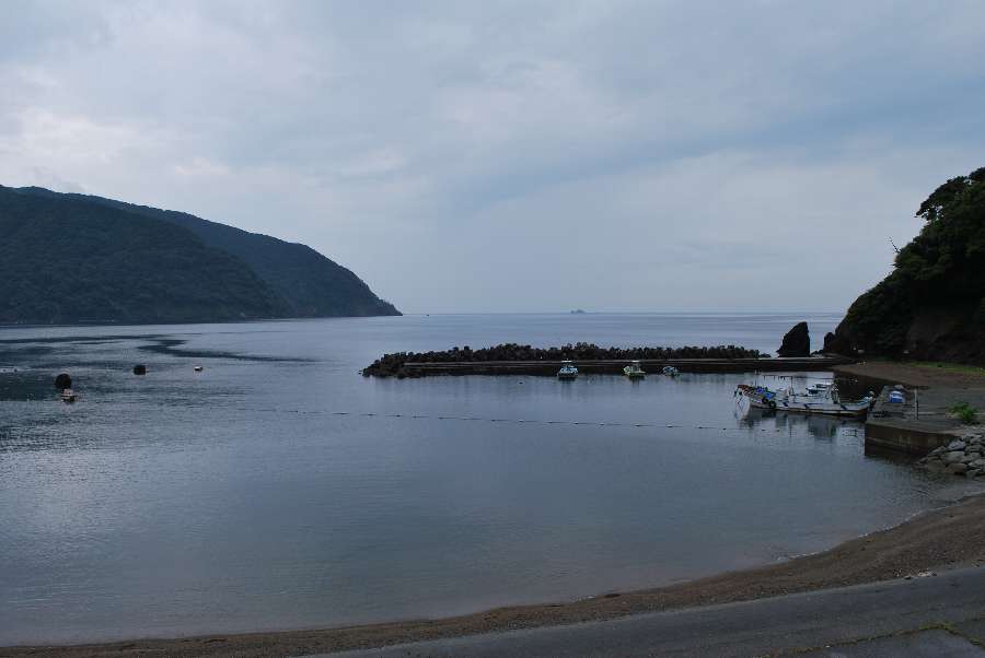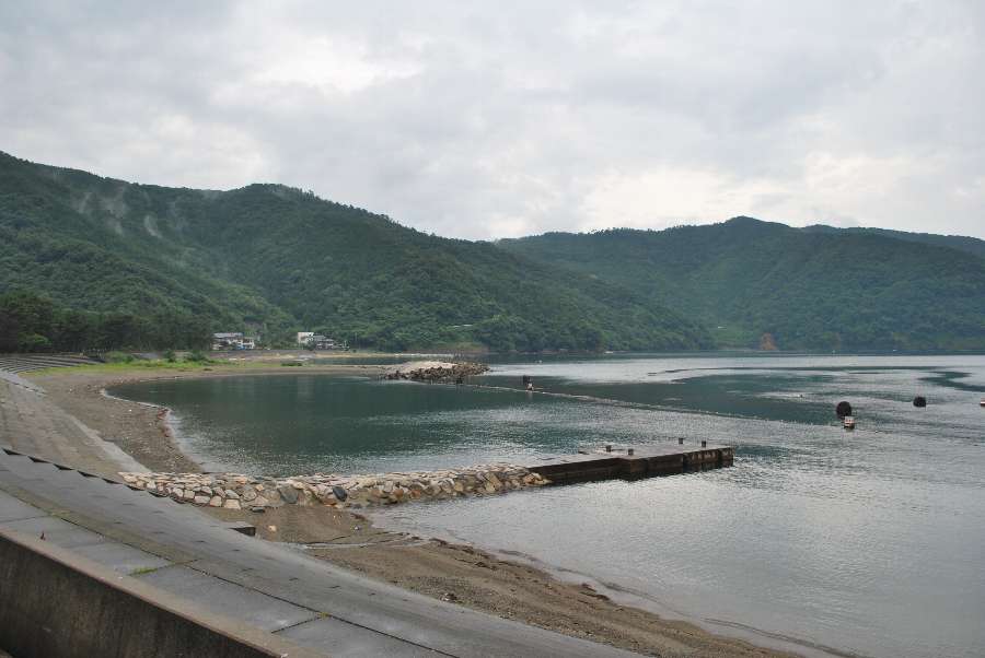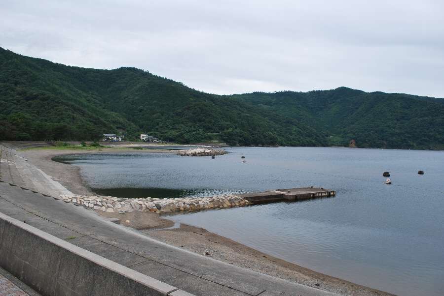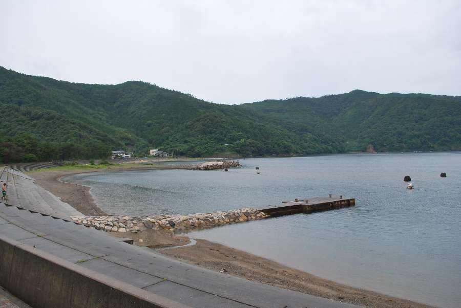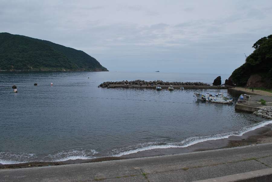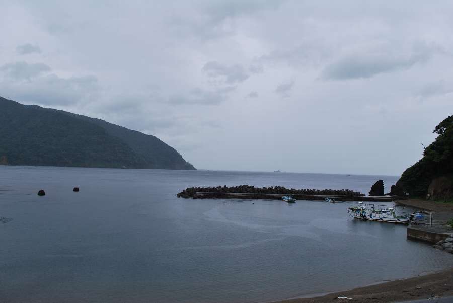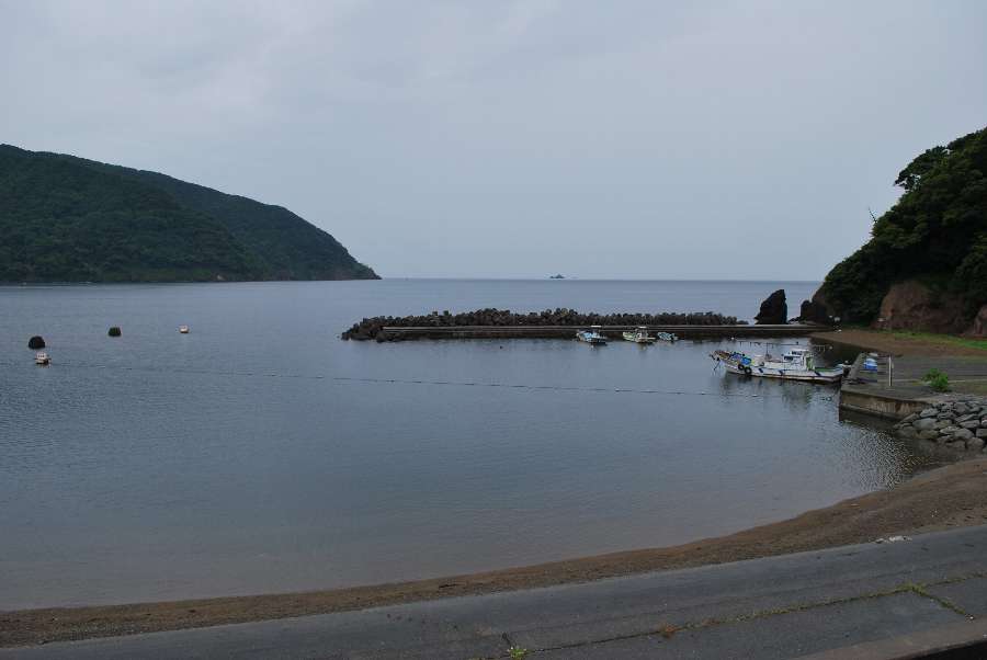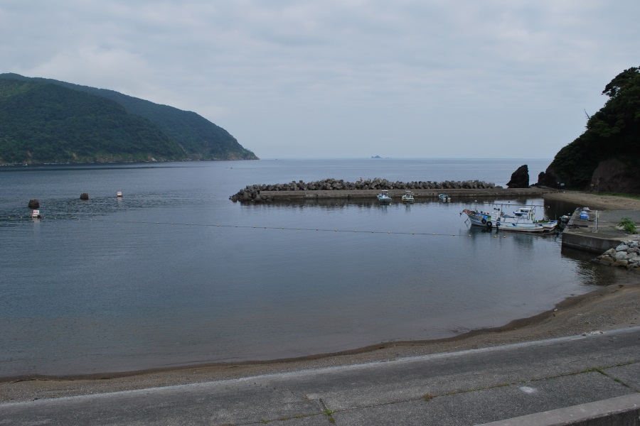 2019年7月20日9時現在は、雨で弱い南寄りの風があります。 食見海岸は波もなく穏やかな海況です。 海水の透明度は高く、メジナの幼魚が泳ぐ姿が見えます。