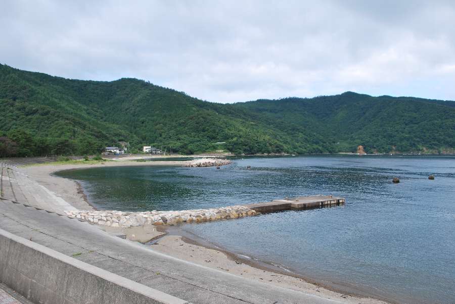 2019年7月15日9時現在は、曇りで北寄りの風があります。 食見海岸は約0.4mの波があります。 海水の透明度は高く、メジナの幼魚が泳ぐ姿が見えます。