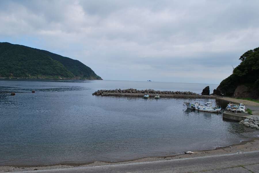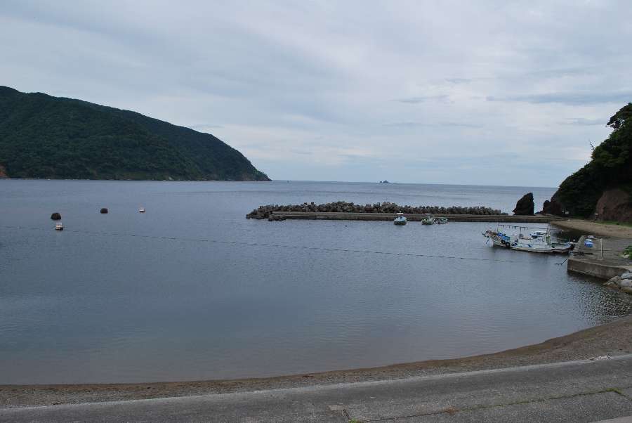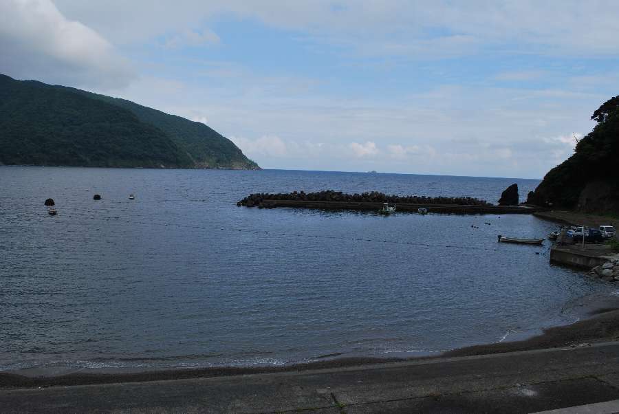 2019年7月19日9時現在は、曇りで弱い南寄りの風があります。 食見海岸は波もなく穏やかな海況です。 海水の透明度は高く、キュウセンやメジナの幼魚が泳ぐ姿が見えます。