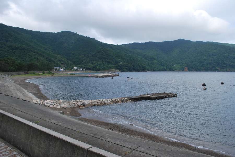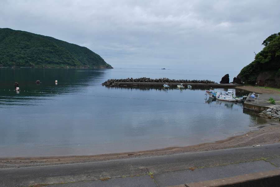 2019年7月12日9時現在は、曇りで弱い南寄りの風があります。 食見海岸は波もなく穏やかな海況です。 海水の透明度は高く、海底の岩やメジナの幼魚が見えます。