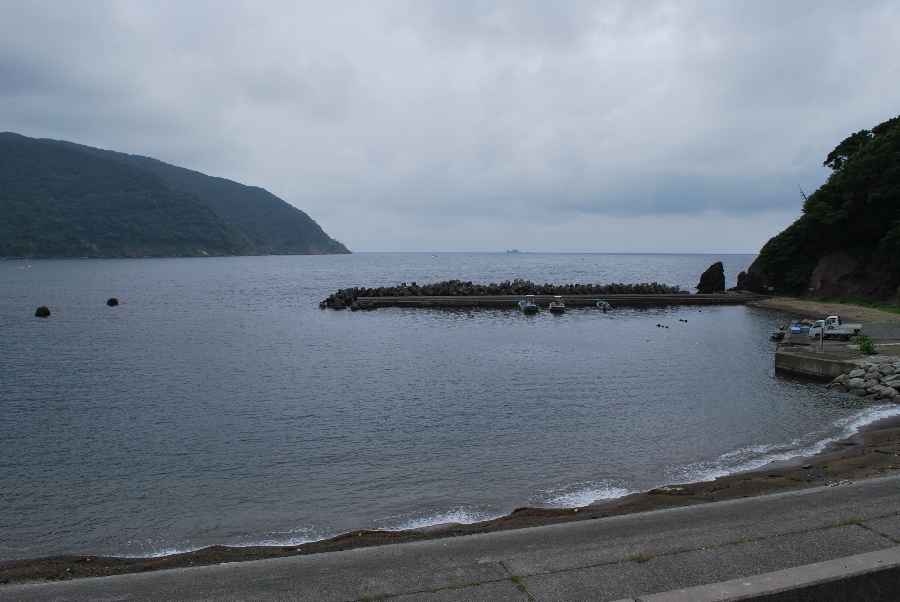 2019年7月4日9時現在は、曇りで弱い南風が吹いています。 食見海岸は波もなく、穏やかな海況です。 海水の透明度は高く、メジナの幼魚が泳ぐ様子が見えます。