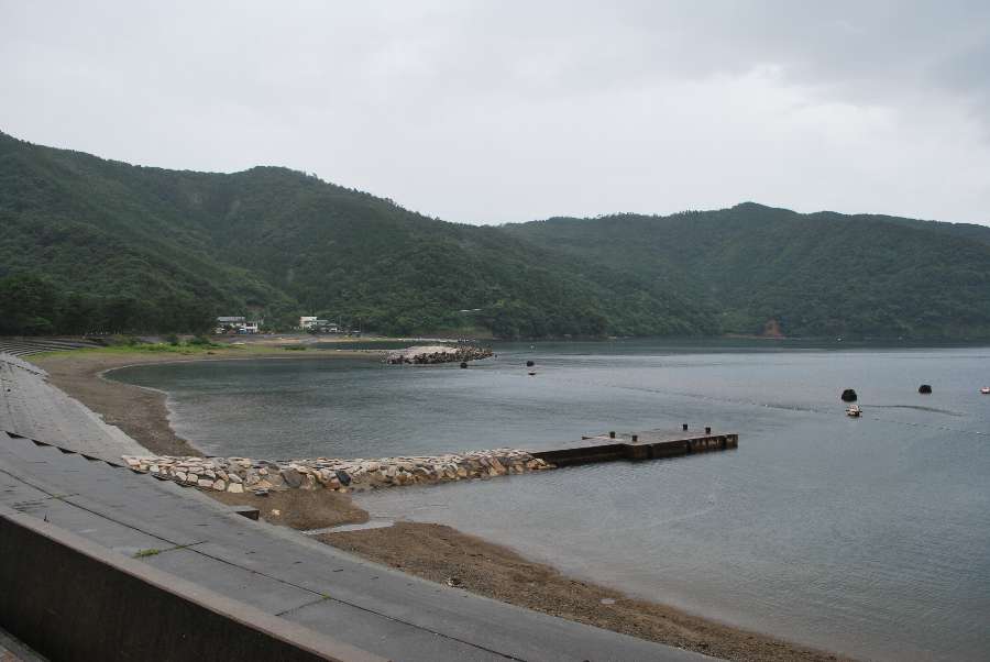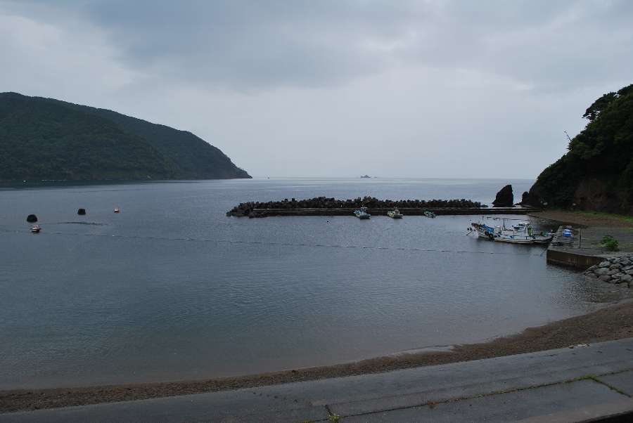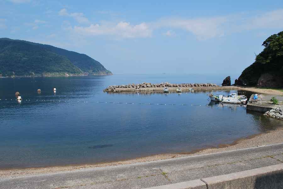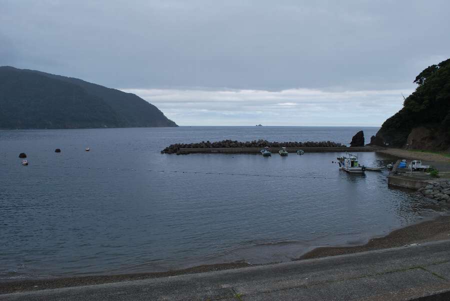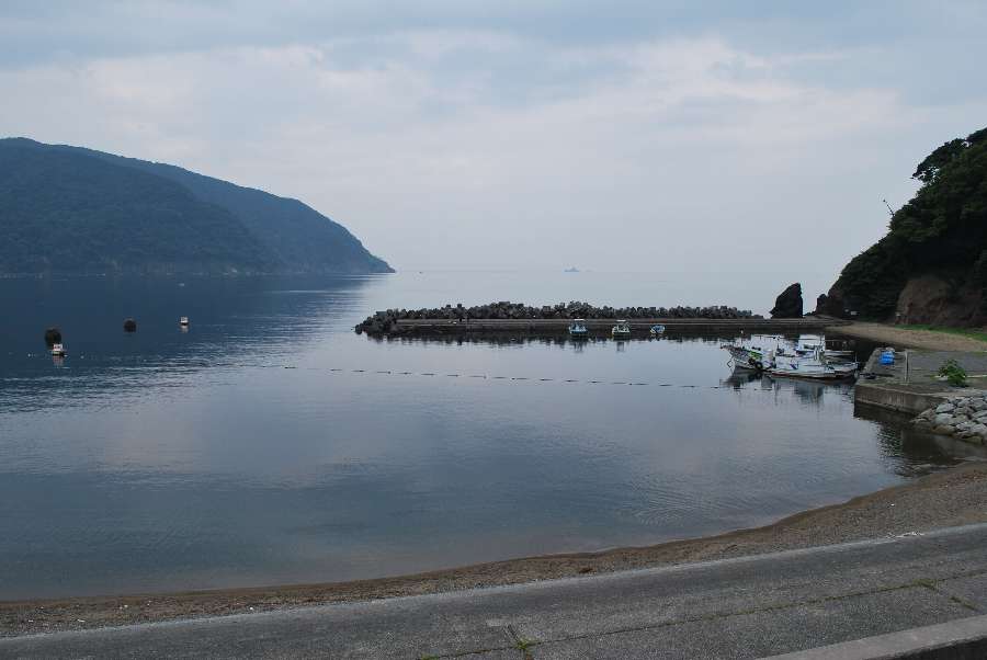 食見海岸は波もなく穏やかな海況です。