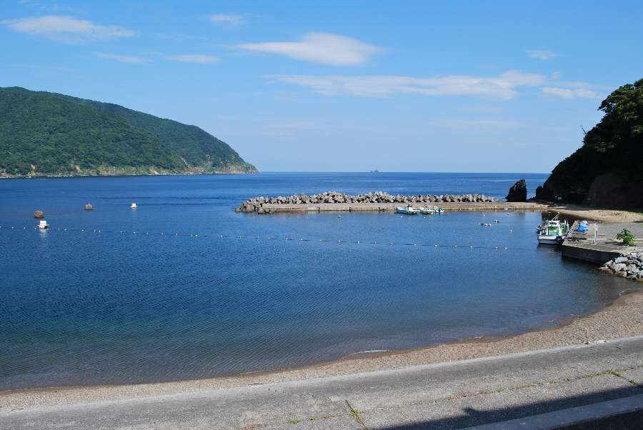 食見海岸はさざ波はありますが穏やかな海況です。
