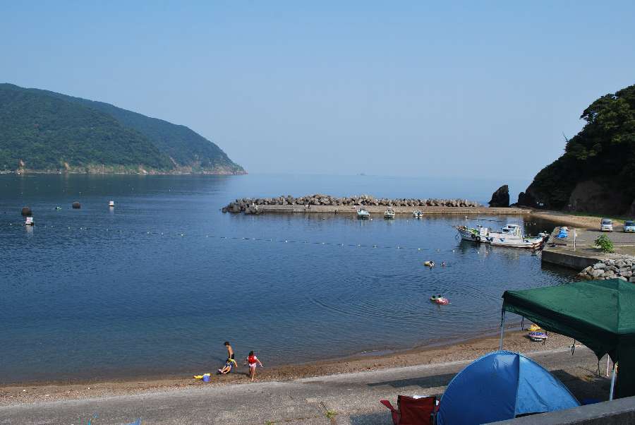 食見海岸は波もなく穏やかな海況です。