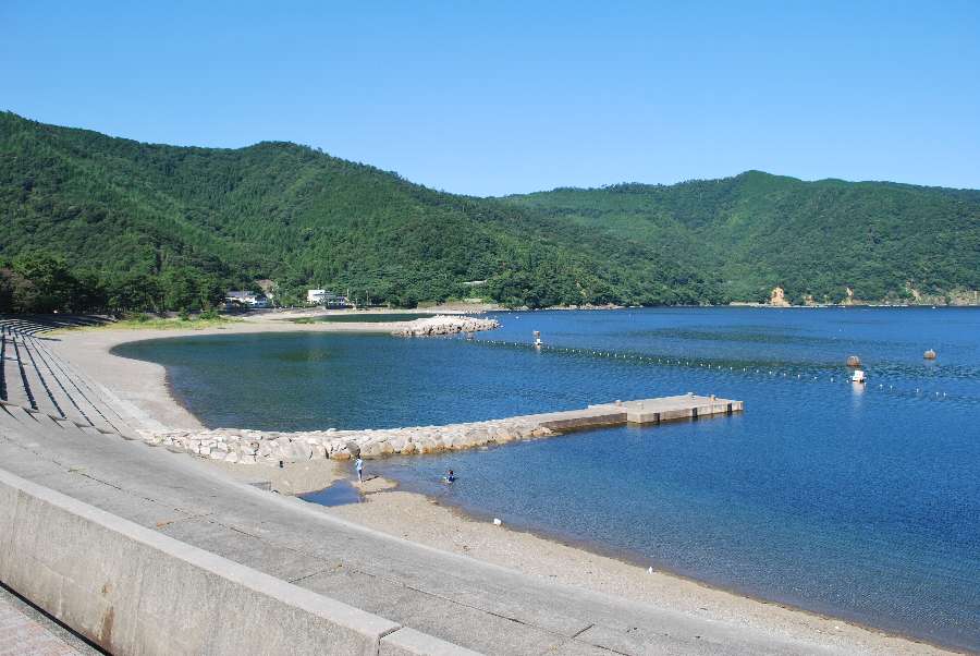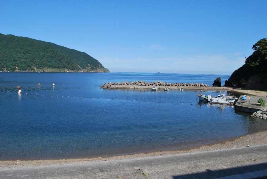 食見海岸は波もなく穏やかな海況です。