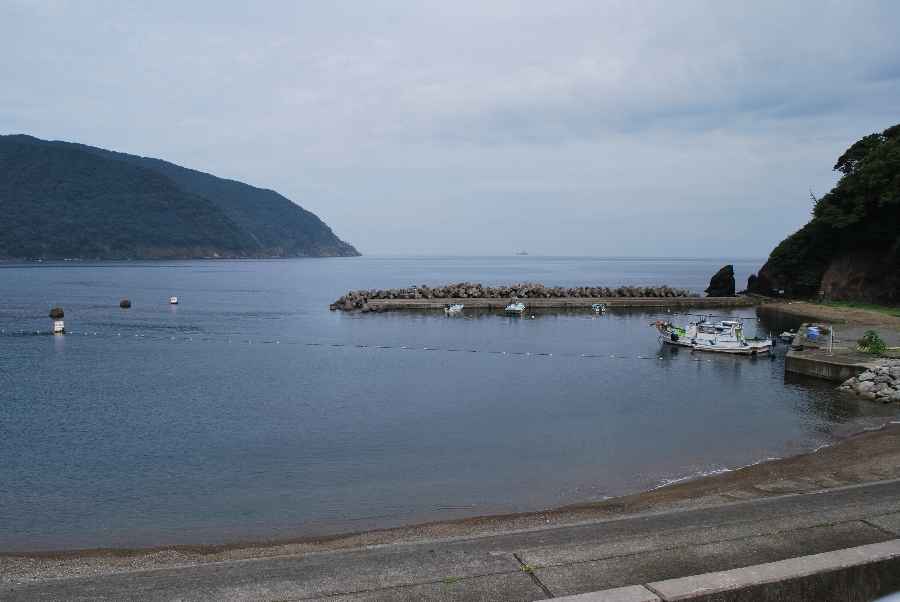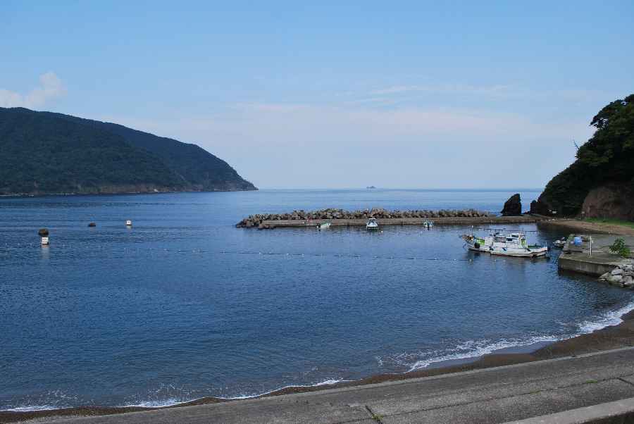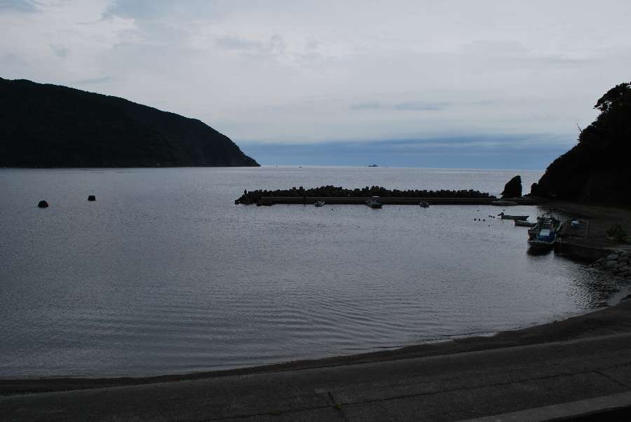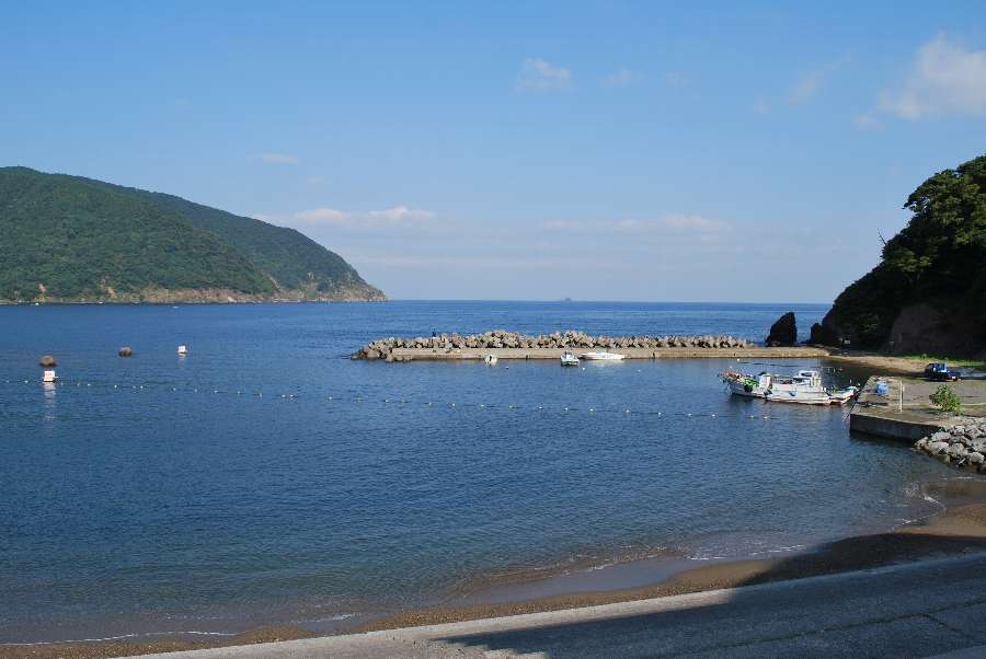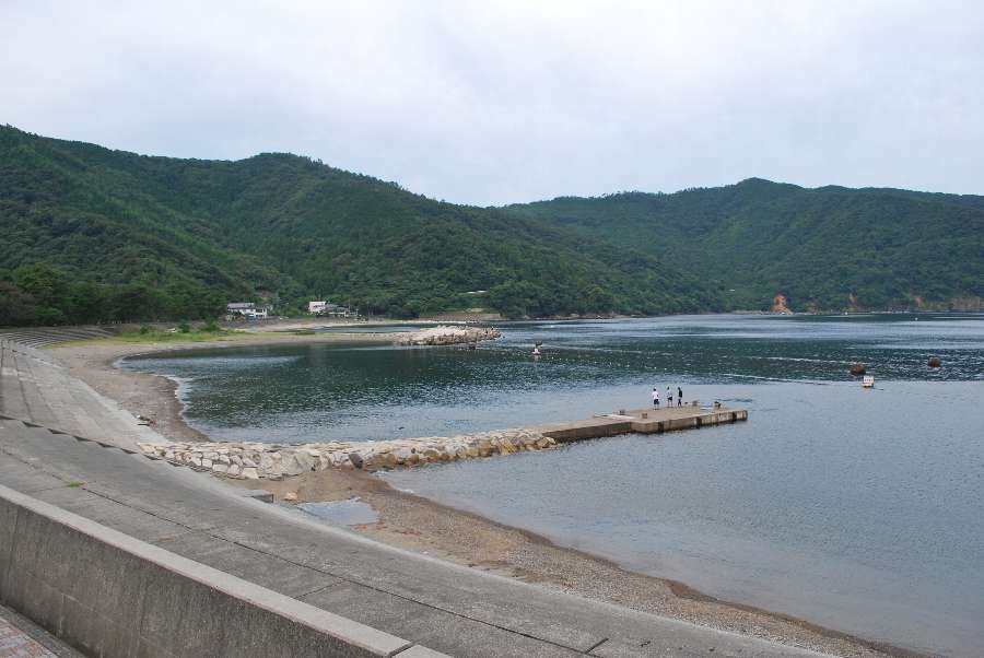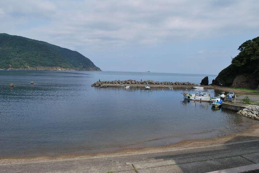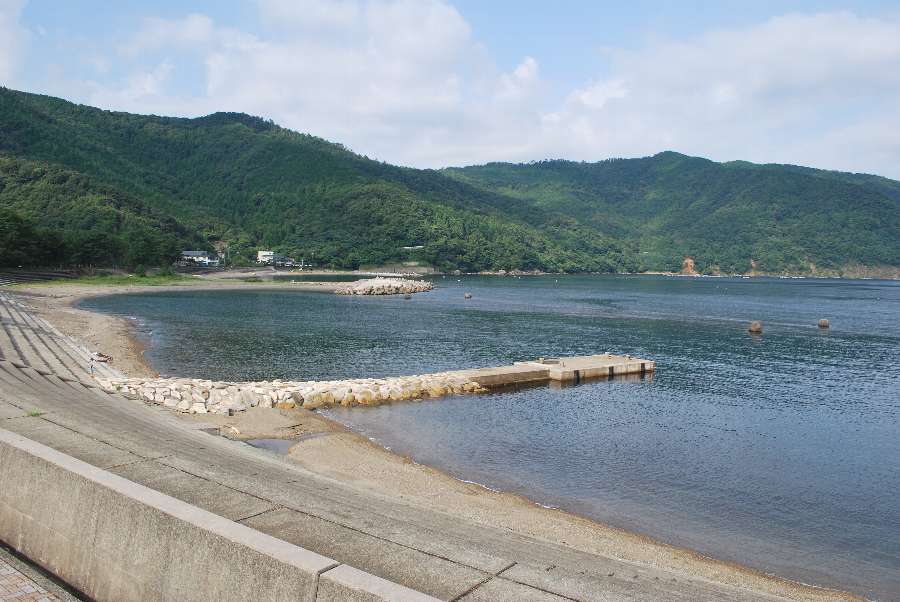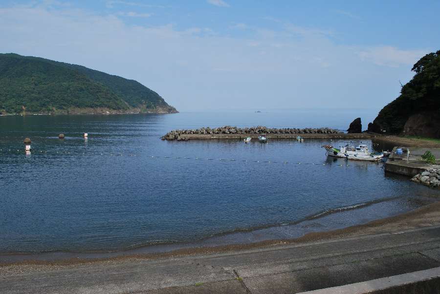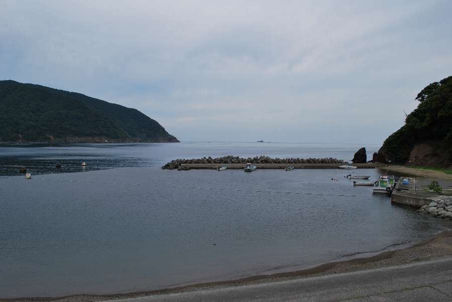 2019年8月27日9時現在は、曇りで、南寄りの風があります。 食見海岸は波もなく、穏やかな海況です。 海水の透明度は高く、メジナの泳ぐ様子がよく見えます。