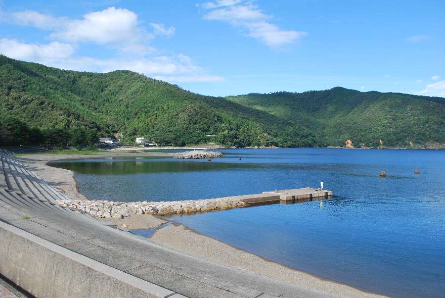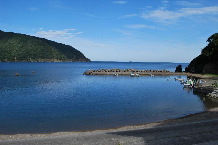 食見海岸は岸から沖にかけてのさざ波がありますが、穏やかな海況です。