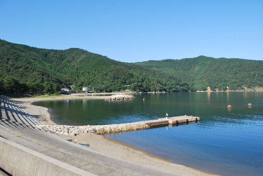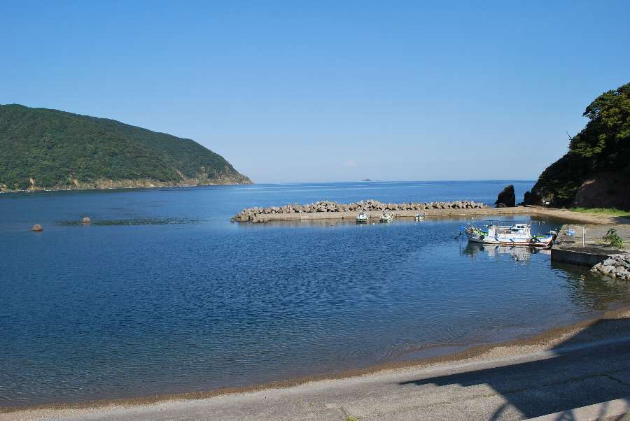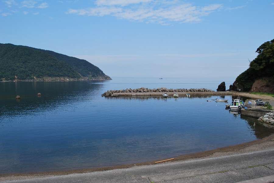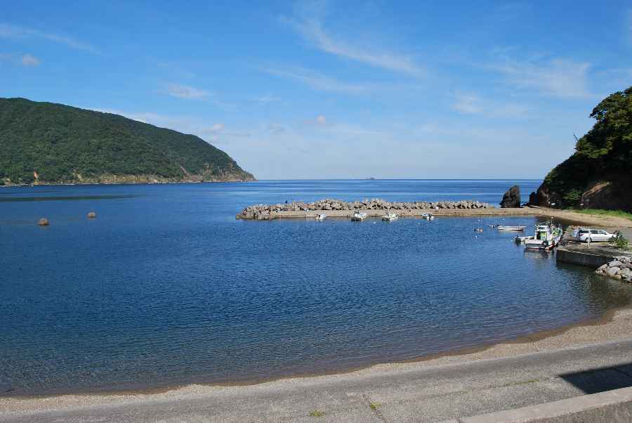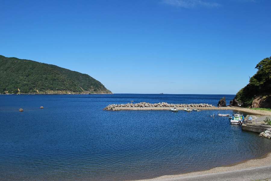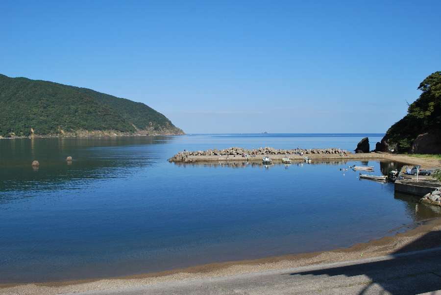 食見海岸は岸から沖にかけてのさざ波がありますが、穏やかな海況です。