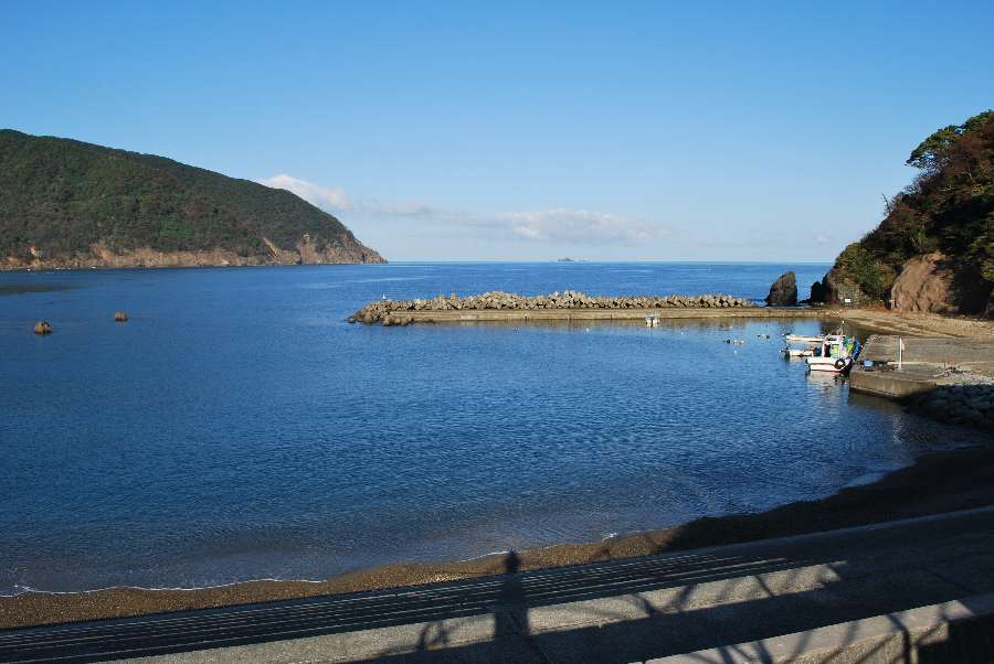 海水の透明度は高く、海底の岩や海藻が生えている様子が見えます。