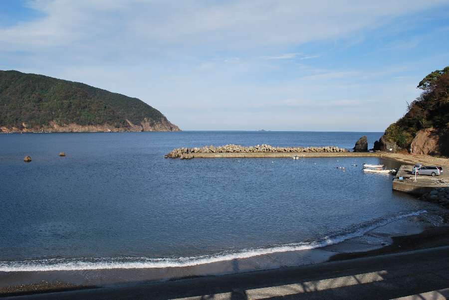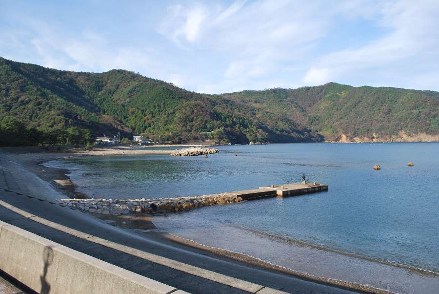 2019年11月7日9時現在は、晴れで強い南寄りの風が吹いています。 食見海岸は風によるさざ波はありますが穏やかな海況です。 海水の透明度は高く、海底の岩や海藻が生えている様子が見えます。