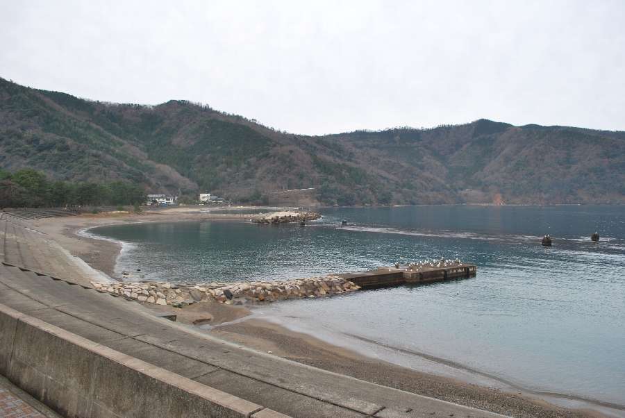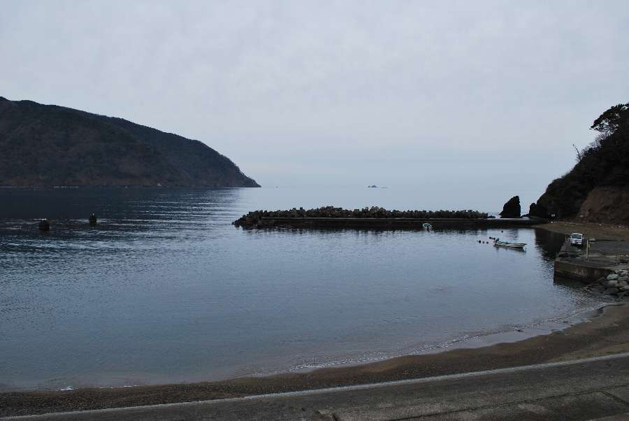 食見海岸は波もなく穏やかな海況です。