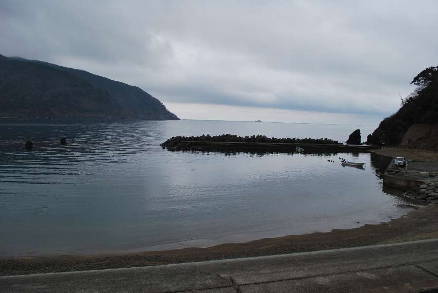 2020年2月15日9時現在は、曇りで弱い北よりの風が吹いています。 食見海岸は波もほとんどなく穏やかな海況です。 海水の透明度は高く、海底の岩や海藻が生える様子がよく見えます。