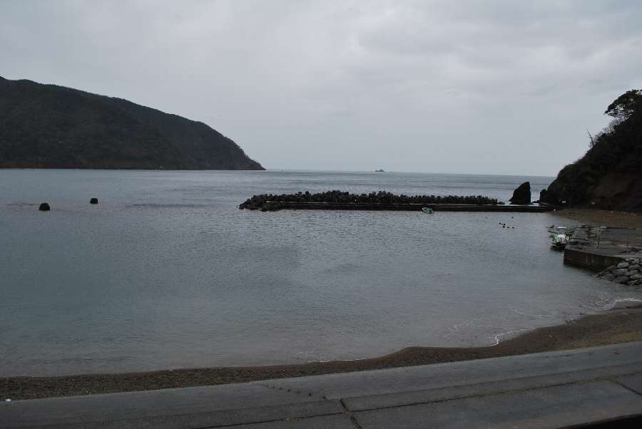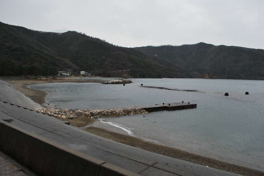 食見海岸は岸から沖合いにかけての風波はありますが、岸は穏やかな状態です。