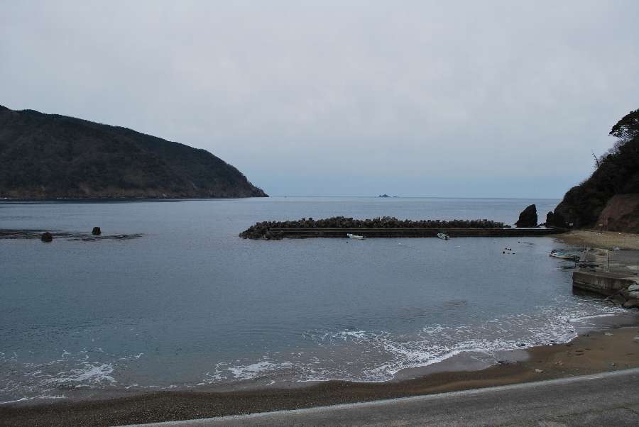 2020年3月4日9時現在は、曇りで弱い南よりの風が吹いています。 食見海岸は約1mの波があり、防波堤の根元に波が被っています。 海水の透明度は高く、海底に生えている海藻の様子が見えます。